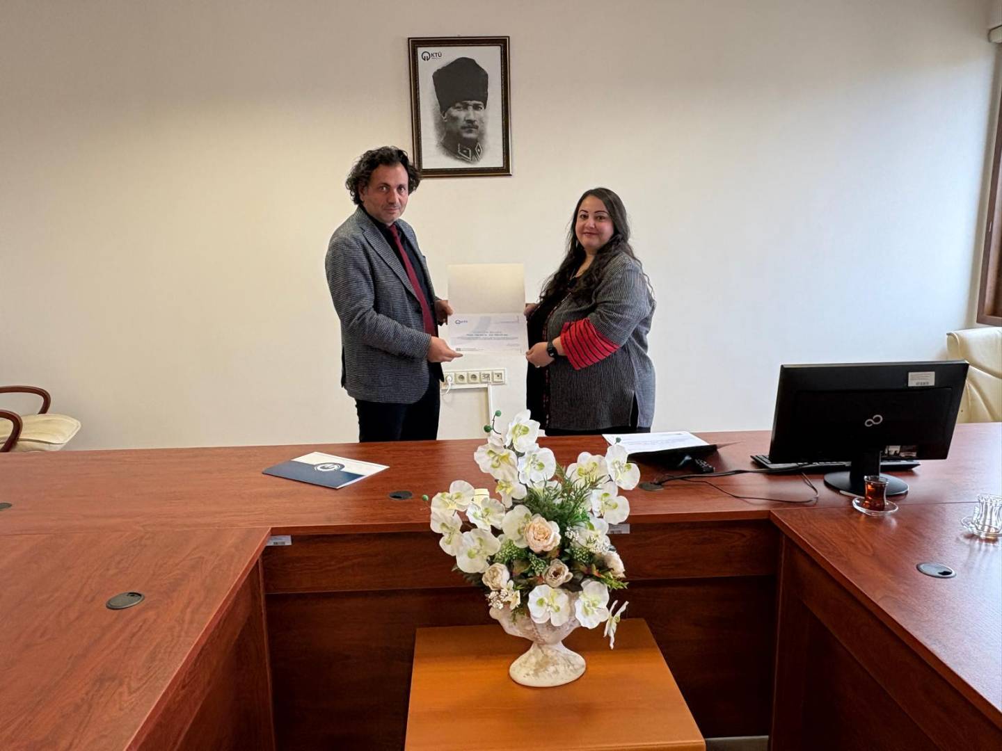 2025 yılı içerisinde gerçekleştirdikleri makale, bildiri ve kitap bölümü çalışmalarıyla Yüksekokulumuzda en fazla akademik yayına imza atan akademisyenlerimiz Öğr. Gör. Dr. Ahmet Cem ESENLİKCİ, Öğr. Gör. Dr. Mehmet Ali ENGİN, Öğr. Gör. Dr. Sadrettin ÇODUR, Öğr. Gör. Dr. Çisil ERKAN BAL ve Öğr. Gör. Pelin TÜRKMEN’e, akademik üretkenlikleri ve kurumsal başarıya sundukları katkılar dolayısıyla teşekkür belgesi takdim edildi.