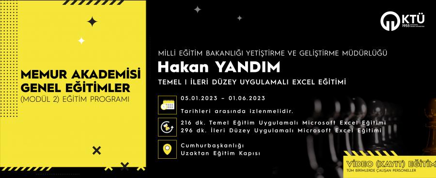 Milli Eğitim Bakanlığı Yetiştirme ve Geliştirme Müdürlüğünden Hakan YANDIM'ın katkılarıyla hazırlanan video (kayıt) eğitimi Cumhurbaşkanlığı İnsan Kaynakları Ofisi (CBİKO) Uzaktan Eğitim Kapısı aracılığı ile sunulacaktır.