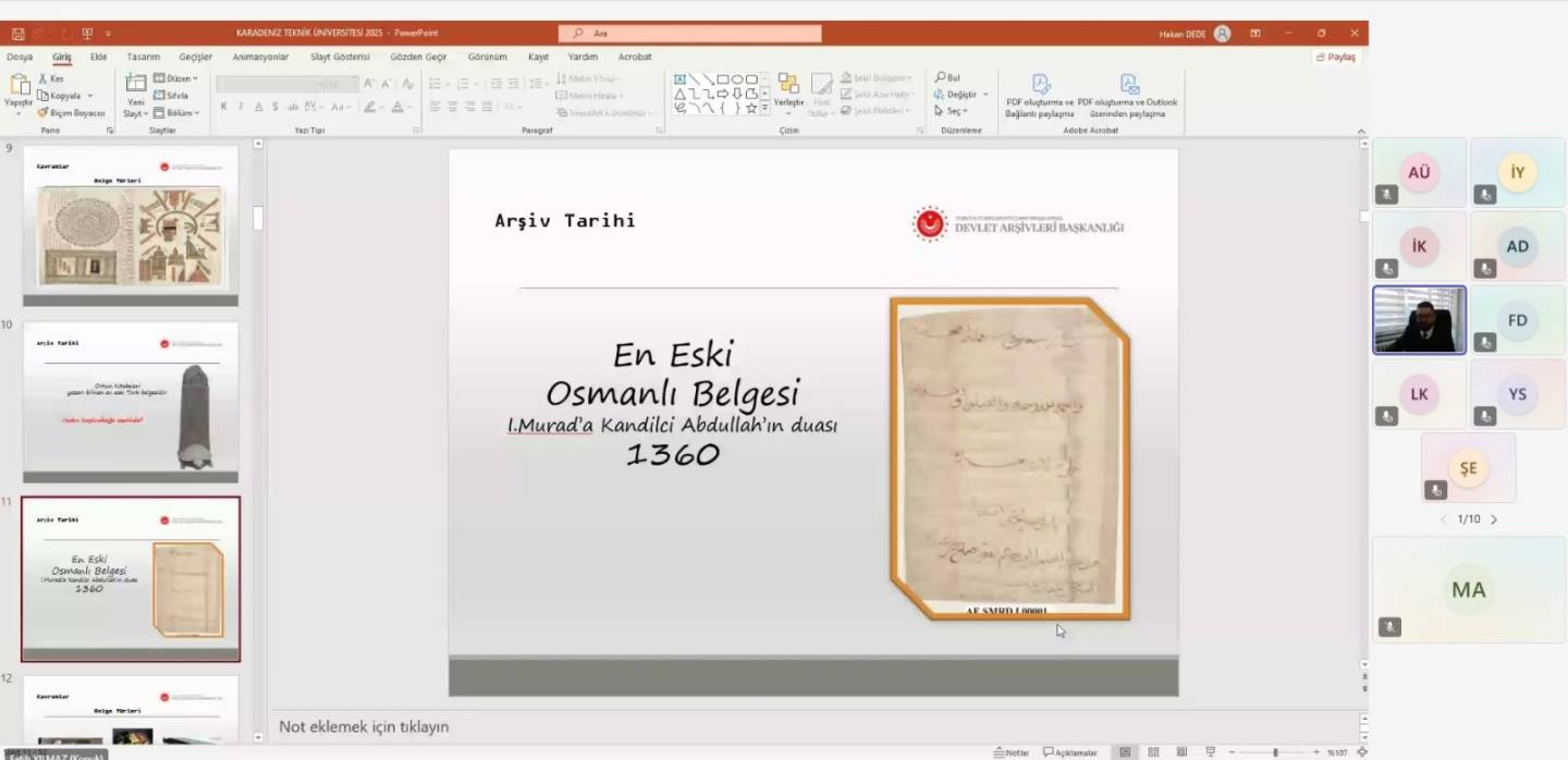 Karadeniz Teknik Üniversitesi olarak, personelimizin bilgi ve becerilerini geliştirmek amacıyla düzenlediğimiz “Arşiv Mevzuatı ve Uygulamaları” hizmet içi eğitimi 13 Kasım 2025 tarihinde KTÜ Uzaktan Eğitim Sistemi üzerinden başarıyla verildi.