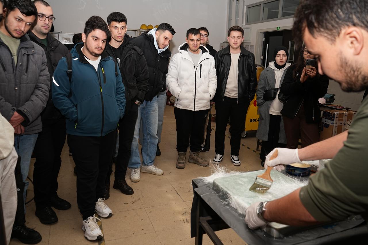 Okulumuzdaki etkinlikte Gemi İnşa bölümü öğrencileri ile birlikte epoksi sehpa ve fiber döküm işlemi yapılmıştır. Öğrencilerimize, epoksi çeşitleri, karışım oranları, bekleme süreleri ve sonrasında ürün parlatma işlemleri uygulamalı olarak gösterilmiştir.