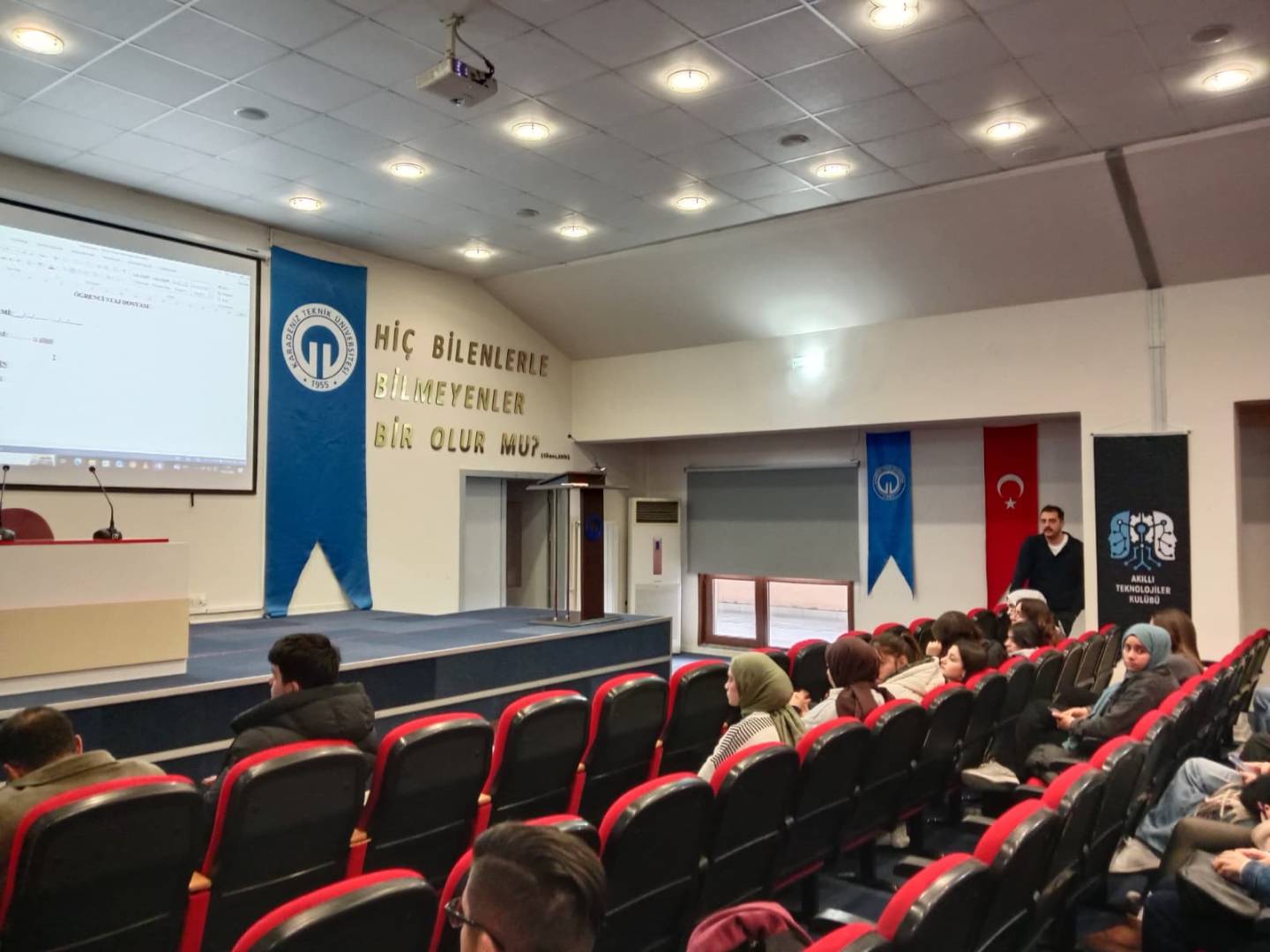 Elektronik ve Otomasyon Bölümü öğrencileri için Konferans Salonunda düzenlenen programa bölüm başkanımız, akademik personelimiz ve öğrencilerimiz katıldı. Öğrencilerin yoğun ilgi