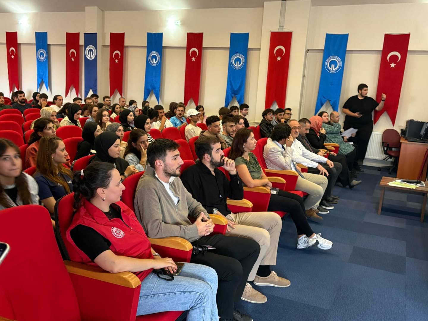 Konferansın konuşmacısı Aryom Yazılım’dan Alperen Can Bacak, yapay zekânın mobil alanındaki gelişmeleri, günlük yaşama etkilerini ve gelecekte bizleri bekleyen yenilikleri aktardı. Öğrencilerin dikkatle takip ettiği sunumun ardından, Alperen Bey katılımcıların yoğun ilgi gösterdiği soruları yanıtladı ve öğrencilerle kısa bir sohbet gerçekleştirdi.