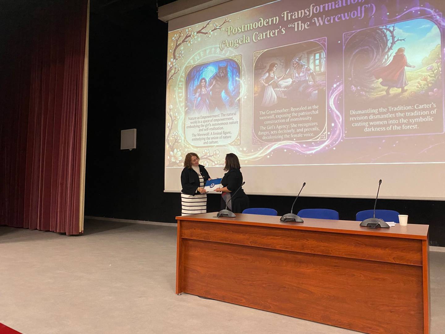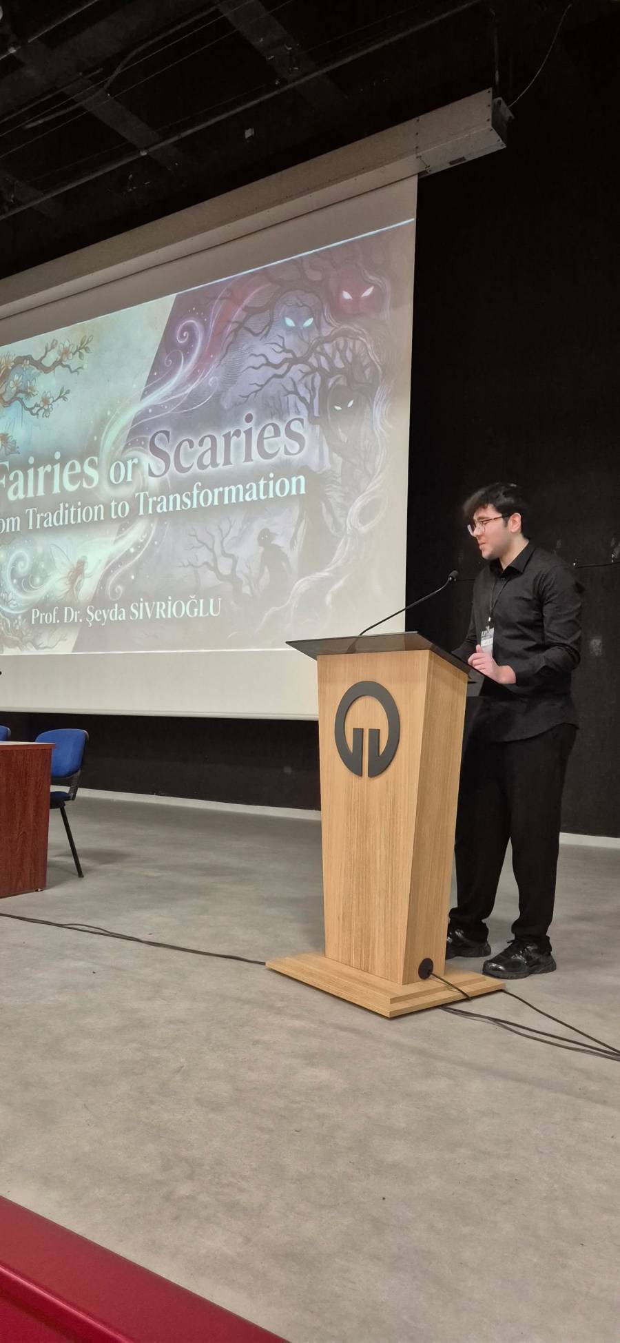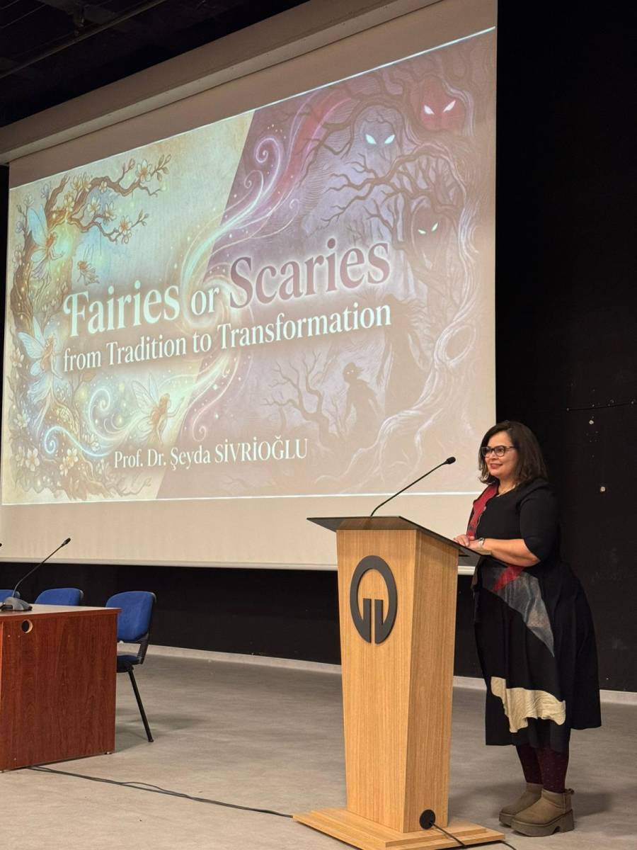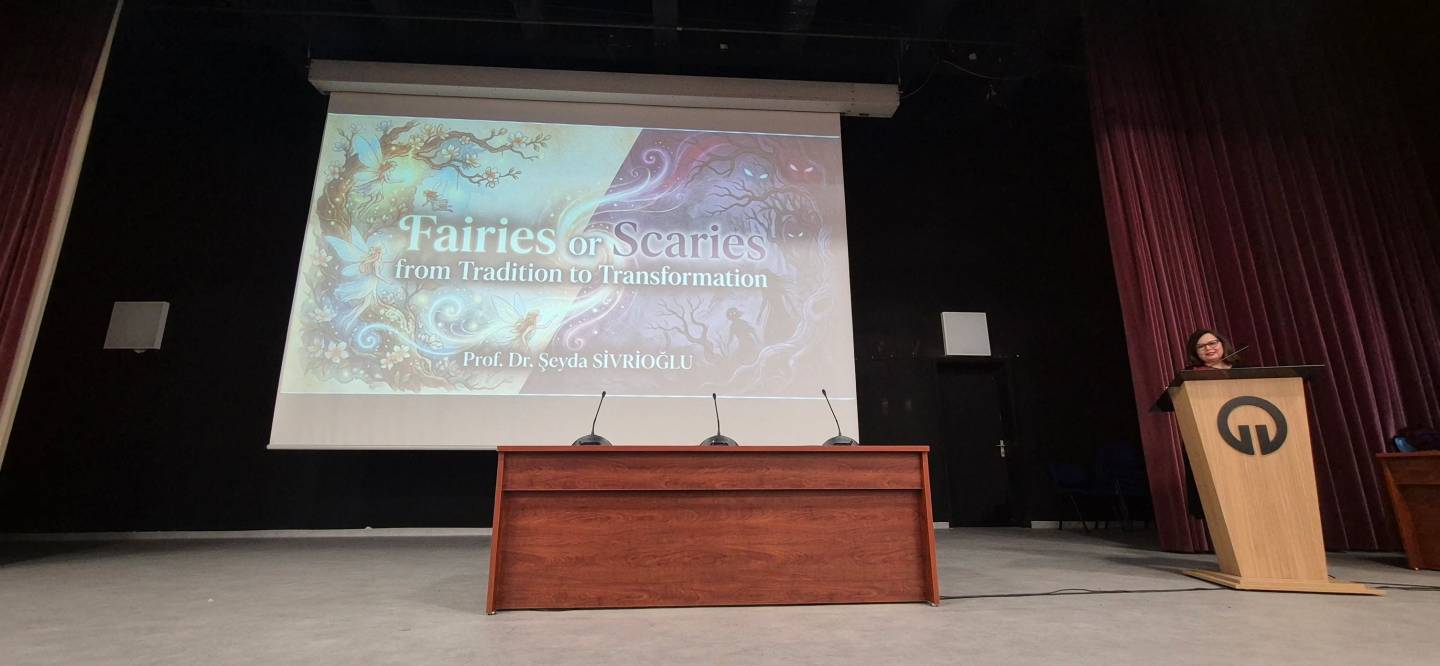 “FAIRIES OR SCARIES? From Tradition to Transformation: Challenging Grand Narratives of Fairy Tales” başlıklı seminerde Prof. Dr. SİVRİOĞLU, masalların geleneksel anlatı yapılarının zaman içinde nasıl dönüştüğünü ele aldı. Sunumda masalların yalnızca çocuk edebiyatına ait metinler olarak değil; toplumsal, kültürel ve ideolojik boyutları olan anlatılar olarak okunabileceği üzerinde duruldu.