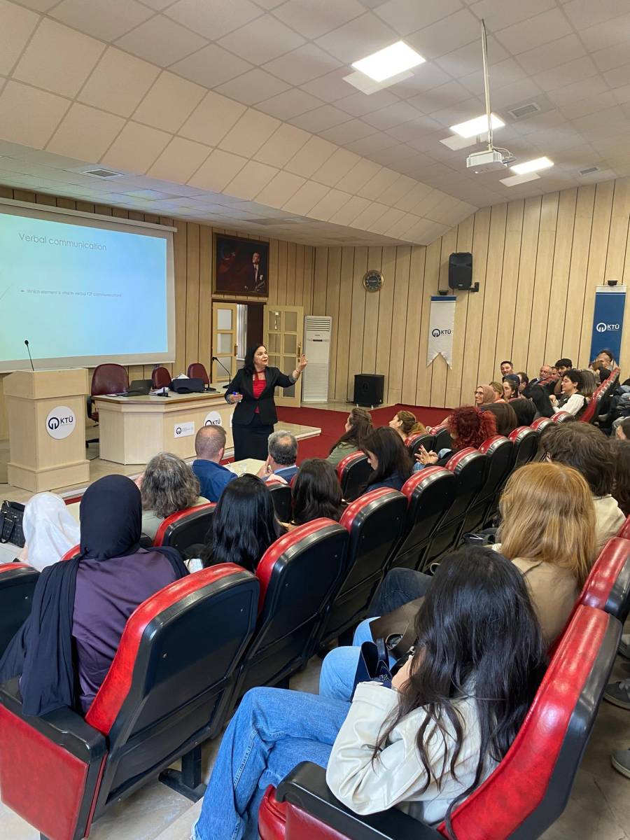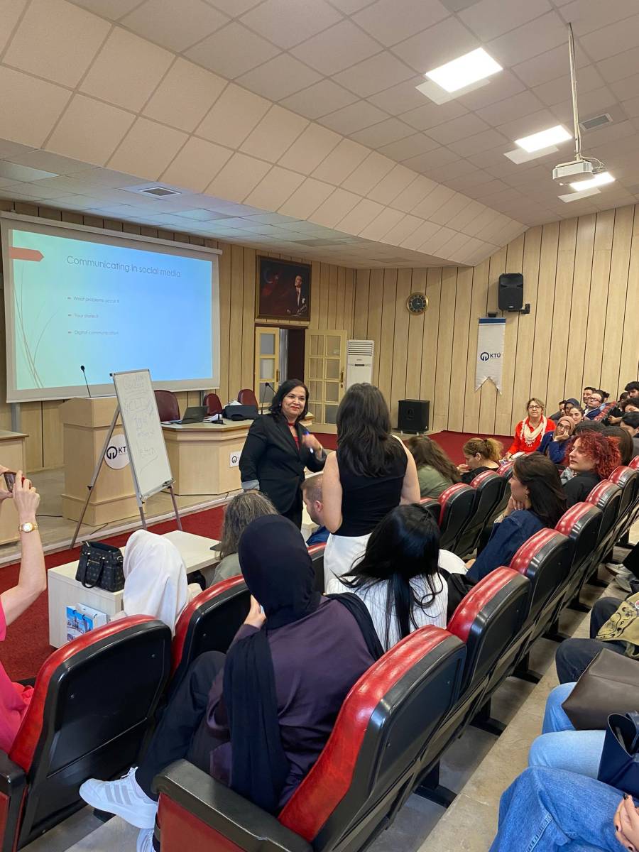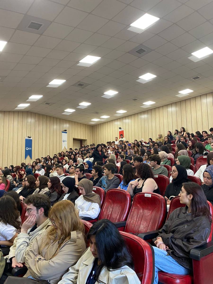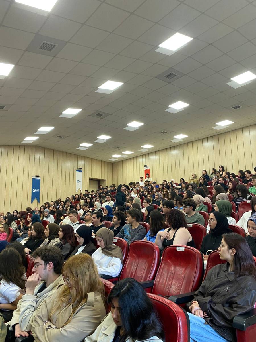 Prof. Dr. Tunaboylu, iletişimde sıkça yaşanan kopuklukların nedenlerini örneklerle açıklarken, öğrenciler de derse interaktif ve katılımlı bir şekilde eşlik ederek canlı bir tartışma ortamı oluşturdu. Etkinlik sonunda Bölüm Başkanımız Prof. Dr. M. Naci Kayaoğlu, Prof. Dr. Tunaboylu’na teşekkür belgesi ve hediyeler takdim etti. Prof. Dr. M. Naci Kayaoğlu ayrıca, “Eğitimi dört duvarın ötesine taşıyarak öğrencilerimizi farklı iklim ve platformlarda buluşturmaya devam edeceğiz” sözleriyle bölümün vizyonunu paylaştı.