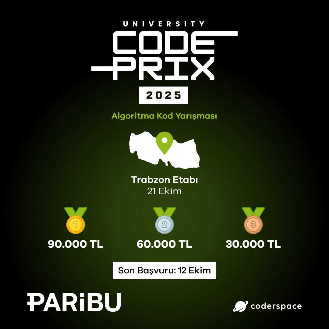 Başvuru Linki: https://coderspace.io/etkinlikler/paribu-university-code-prix/?utm_source=uni&utm_medium=trabzon&utm_campaign=paribu