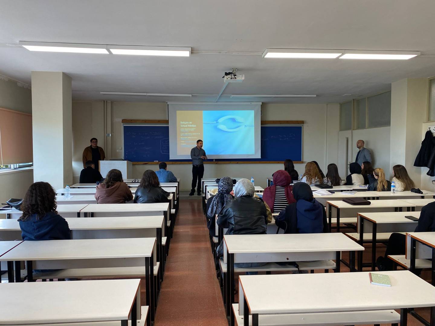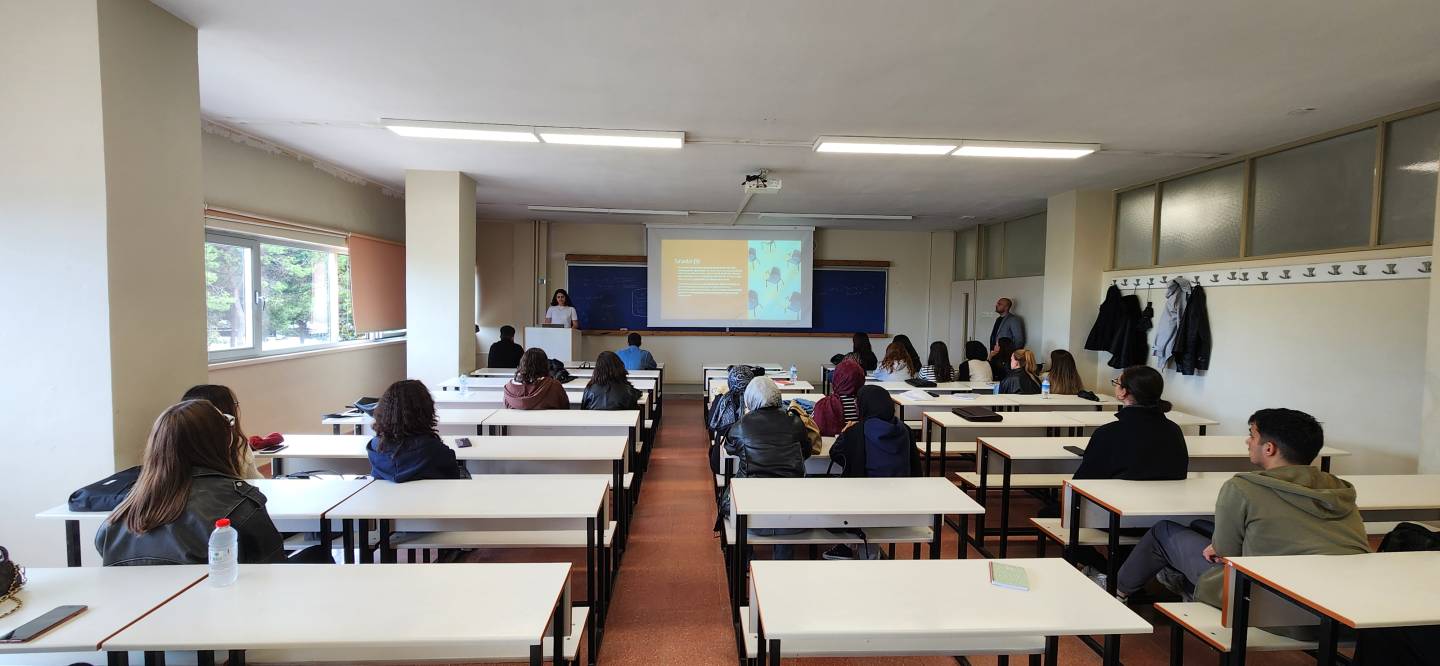Sunumu Arş. Gör. Dr. Ayşıl Kabakçı gerçekleştirdi. Programa ayrıca Bölüm Başkanı Prof. Dr. Salih Dursun, Bölüm Başkan Yardımcıları Doç. Dr. Mustafa Şen ve Dr. Öğr. Üyesi Yusuf Erdem Tunç katılarak öğrencilerle bir araya geldi.