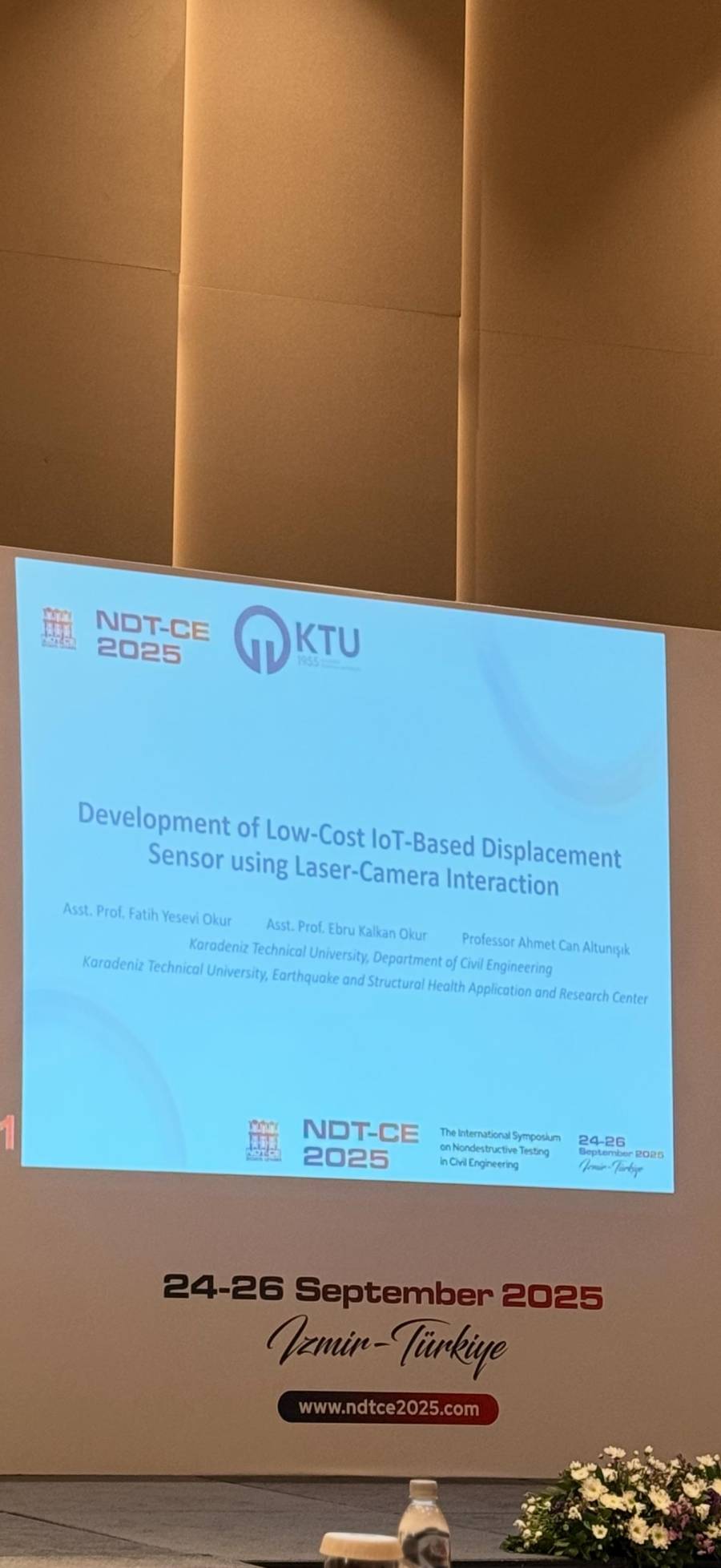 24–26 Eylül 2025 tarihlerinde İzmir’de düzenlenen International Symposium on Non-Destructive Testing in Civil Engineering (NDT-CE 2025) etkinliğine, merkez müdür yardımcımız Dr. Öğr. Üyesi Fatih Yesevi Okur, Dr. Öğr. Üyesi Ebru Kalkan Okur ve Sara Mostofi ile katılım sağlanmıştır.