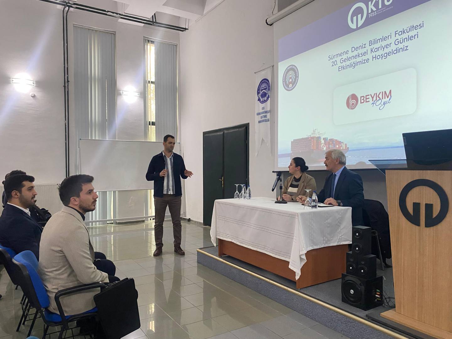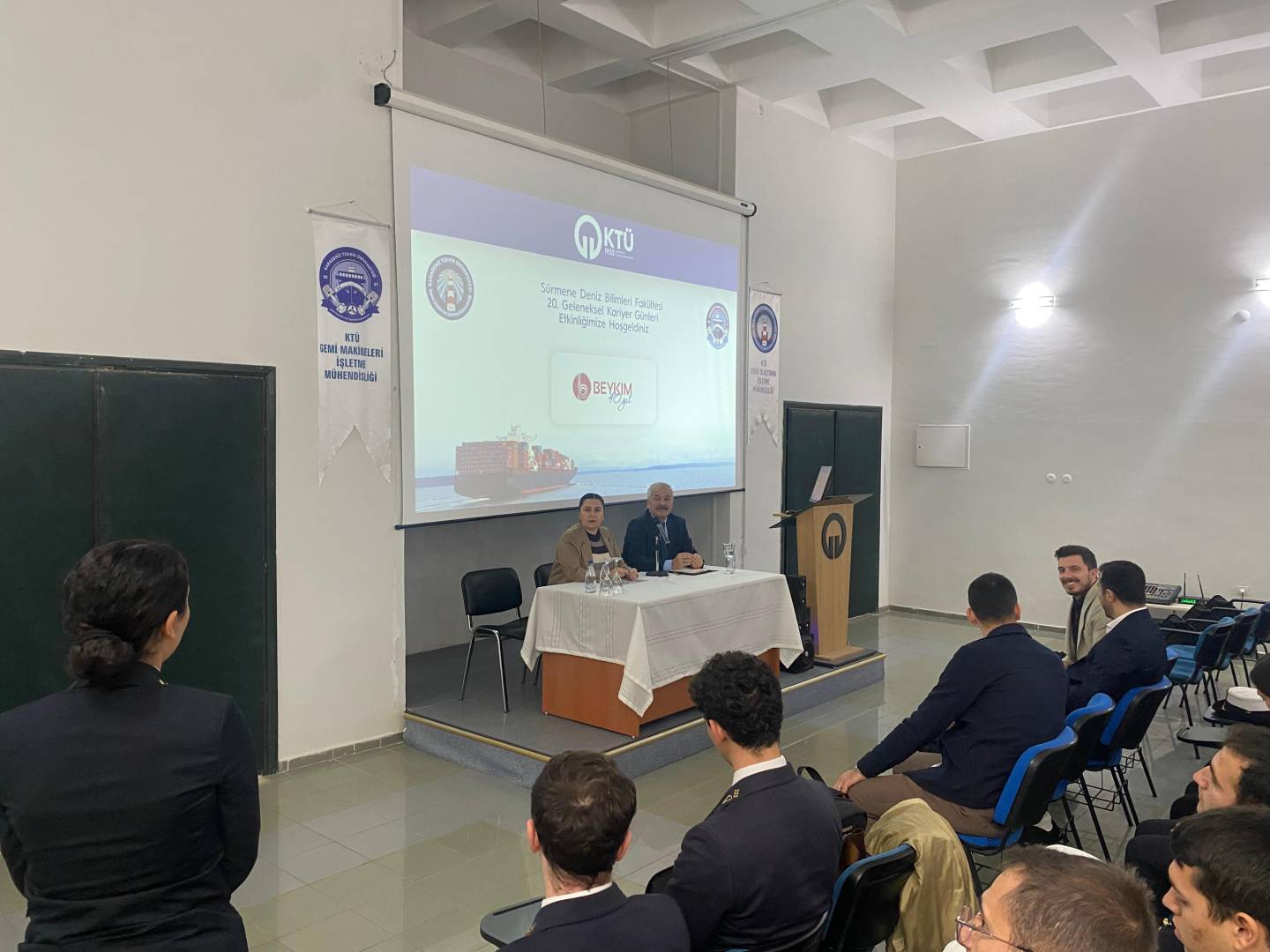 Etkinliğe, Beykim Denizcilik Personel Müdürü Serdar Gür ve Personel Müdür Yardımcısı Damla Zeybekoğlu katılım sağladı. Gerçekleştirilen sunumlarda firma ve filo tanıtımlarının ardından, denizcilik sektöründe kullanılan online eğitim programları hakkında öğrencilerimize bilgilendirme yapıldı.