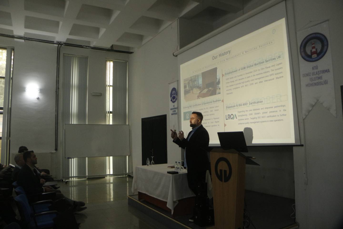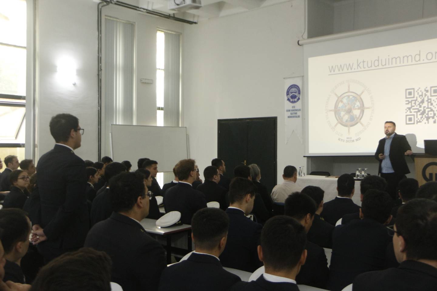 Yaklaşık 2 saat süren oturum boyunca Sn Kasap, öğrencilere yalnızca mesleki gelişim süreçlerini ve kariyer basamaklarını aktarmakla kalmadı; aynı zamanda denizcilik sektöründeki güncel uygulamalar, karşılaşılan zorluklar ve fırsatlar hakkında da kapsamlı bilgiler sundu. Öğrencilerin eğitim hayatlarını daha verimli sürdürebilmeleri, staj ve ilk iş deneyimlerinde doğru adımlar atabilmeleri için pratik öneriler paylaştı.