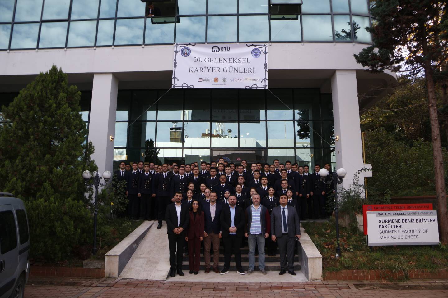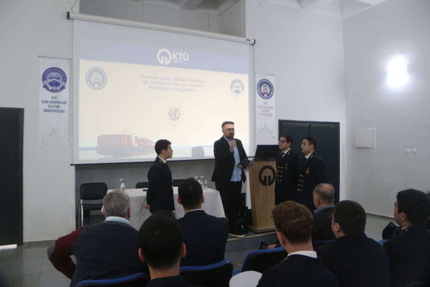 20. Kariyer günleri kapsamında Sürmene Deniz Bilimleri Fakültesi Sahil yerleşkesinde 24 Kasım 2025 Pazartesi saat 9’da başlayan oturumda KTÜ DUİM Mezunları Derneği YK Başkanı Kaptan Orhan Kasap öğrencilere mesleki tecrübelerini aktardı.