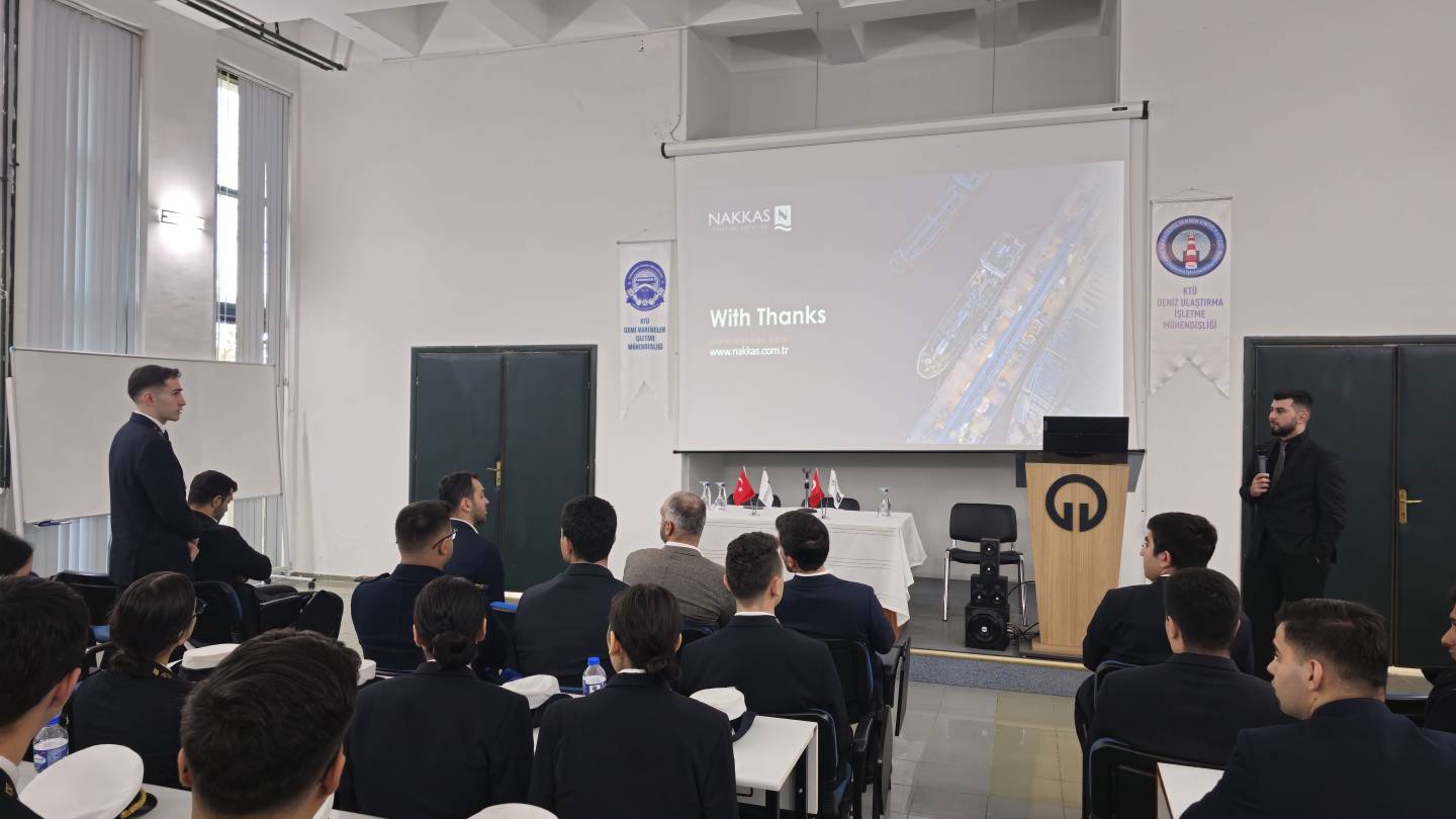 Etkinliğe, Nakkaş Denizcilik Personel Müdürü Kürşad Emre Büyük katılım sağladı. Gerçekleştirilen sunumda, firmanın kurumsal yapısı tanıtılarak Türkiye’nin en genç tanker filolarından birine sahip oldukları vurgulandı. Ayrıca sektördeki güncel gelişmeler ve kariyer olanakları hakkında öğrencilerimize bilgilendirmede bulunuldu.