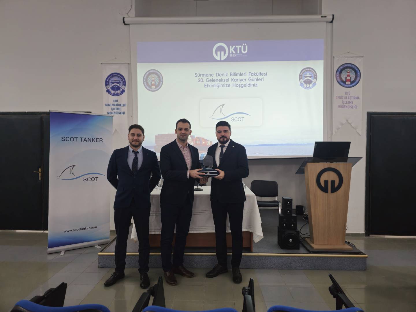 Karadeniz Teknik Üniversitesi Sürmene Deniz Bilimleri Fakültesi Kariyer Kulübü tarafından düzenlenen 20. Kariyer Günlerinin son gününde, 05 Aralık 2025 tarihinde Scot Tanker firması yetkilileri öğrencilerimizle buluştu.