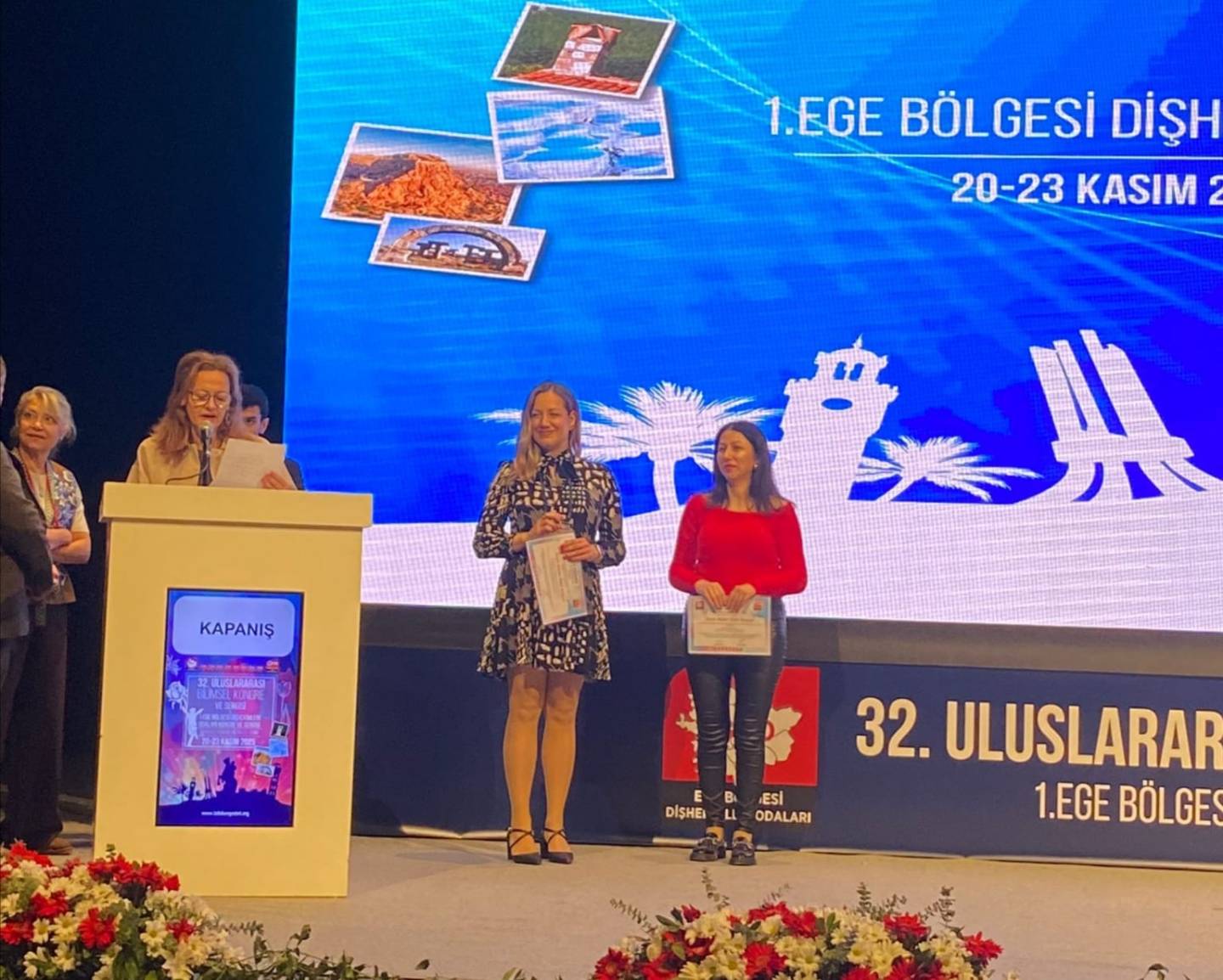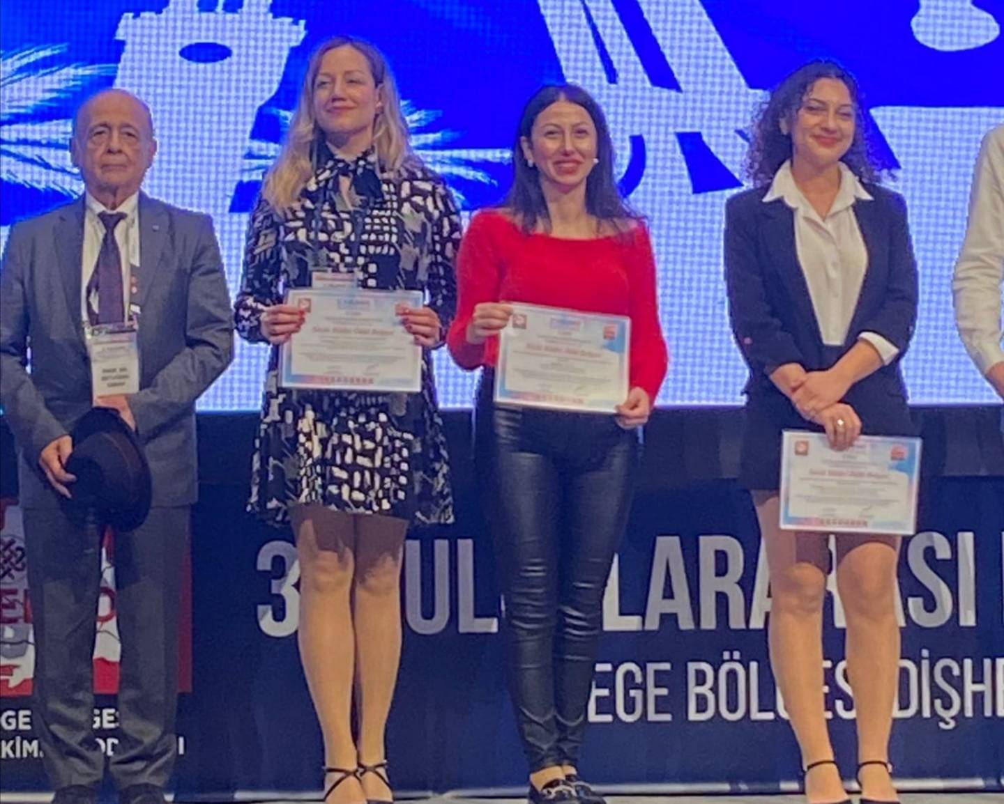 20-23 Kasım 2025 tarihleri arasında İzmir’de düzenlenen 32.İzmir Dişhekimleri Odası Uluslararası Bilimsel Kongre ve Sergisi & 1. Ege Bölgesi Dişhekimleri Odaları Bilimsel Kongre ve Sergisi’nde Fakültemiz Endodonti Anabilim Dalı öğretim elemanlarından Uzm. Dt. Damla Akkaya ve öğretim üyesi Dr. Öğr. Üyesi Tuğba Koşar’ın “Farklı Tipteki Kanal İçi Medikament ve Kök Kanal Patlarının İki Farklı Zaman Aralığında Kök Dentin Kırılma Direnci Üzerine Etkisi” başlıklı çalışmaları “Sözlü Bildiri” kategorisinde üçüncülük ödülü almıştır. Çalışma arkadaşlarımızı tebrik eder, başarılarının devamını dileriz.
