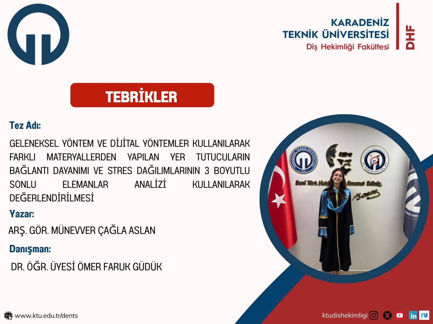 Fakültemiz Klinik Bilimler Bölümü Pedodonti Anabilim Dalı Öğretim Elemanı Arş. Gör. Münevver Çağla ASLAN'ın Tez Çalışması