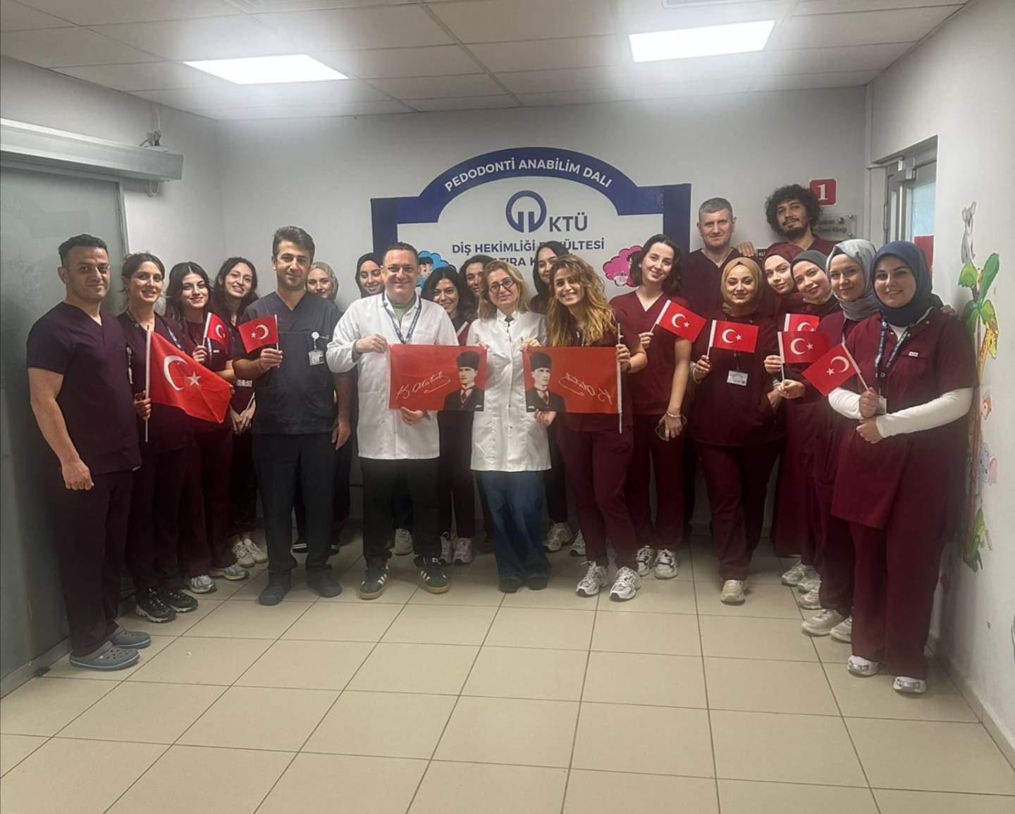 Cumhuriyetimizin 102. yılı, fakültemizde büyük bir coşku ve gururla kutlandı. Fakültemizde düzenlenen programa akademik ve idari personelimiz katılım sağladı. Bu anlamlı gün dolayısıyla Fakültemiz klinikleri bayraklar ve Atatürk posterleriyle süslendi. Personellerimiz, ellerinde Türk bayraklarıyla hatıra fotoğrafları çektirerek Cumhuriyet coşkusunu hep birlikte yaşadılar. Cumhuriyetimizin kuruluşunun 102. yılında gerçekleştirilen bu etkinlik, birlik ve beraberlik duygularını güçlendirirken, Cumhuriyet’in değerlerine olan bağlılığımızı bir kez daha ortaya koydu.