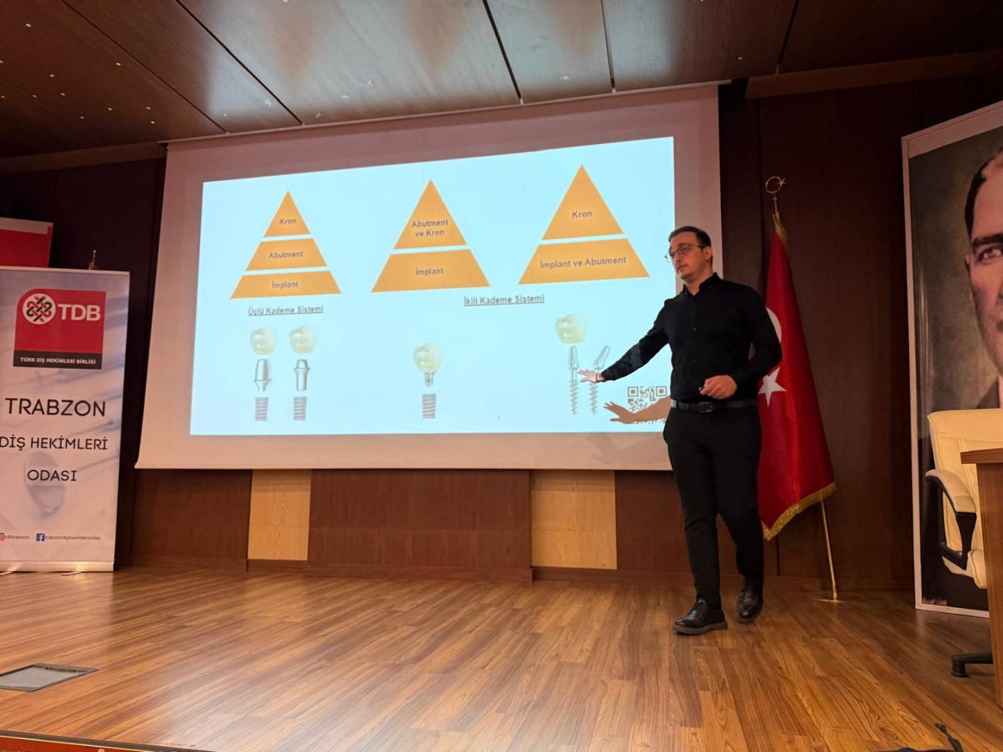 Trabzon Diş Hekimleri Odası tarafından 28 Eylül 2025 tarihinde Artvin’de düzenlenen bilimsel etkinlik kapsamında, Fakültemiz Klinik Bilimler Bölümü Ağız, Diş ve Çene Cerrahisi Anabilim Dalı öğretim üyesi Doç. Dr. Efe Can SİVRİKAYA “İmplant Başarısızlıkları”, Protetik Diş Tedavisi Anabilim Dalı öğretim üyesi Dr. Öğr. Üyesi Nesim ŞAHİN ise “İmplant Üstü Protezler” konulu sunumlarıyla katılımcılara güncel bilimsel gelişmeler hakkında bilgi paylaşımında bulunmuşlardır.