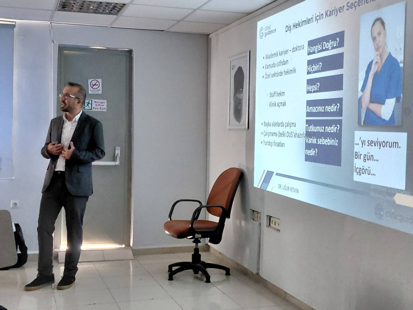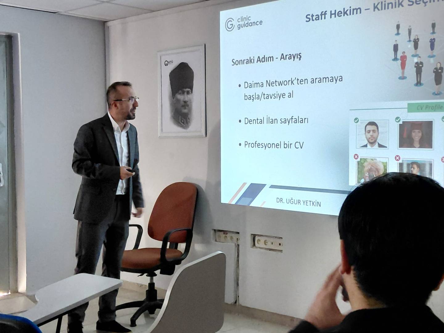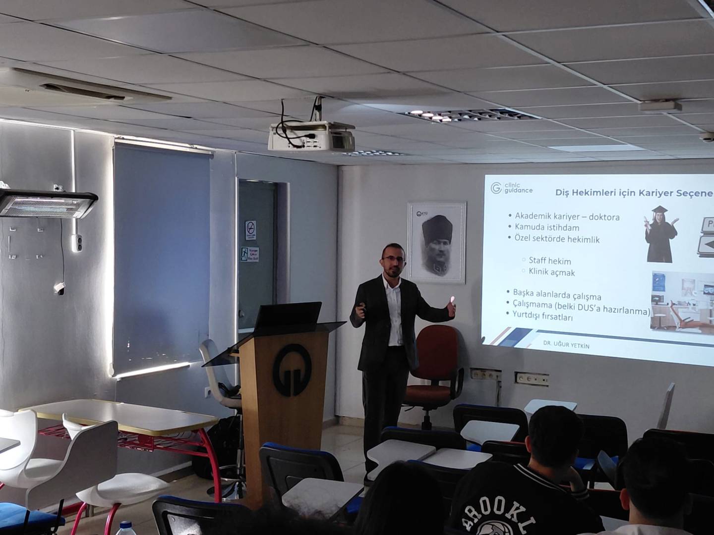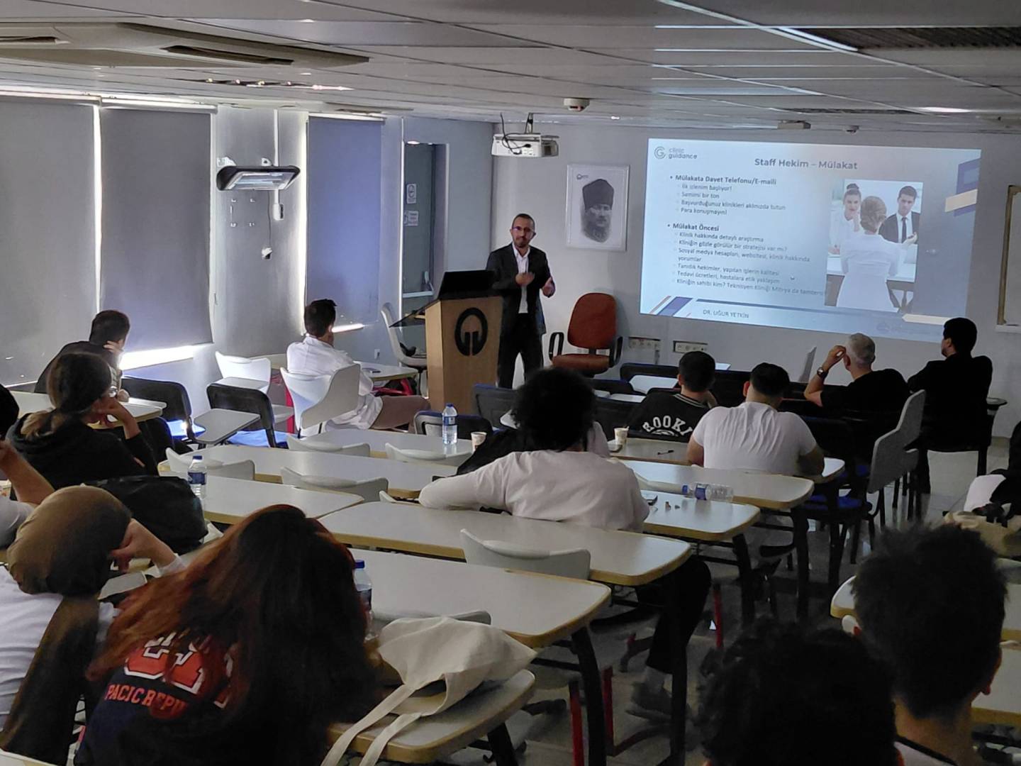 Fakültemiz Dönem V öğrencilerine “Sektör Temsilcileri ile Söyleşi” dersi kapsamında Dr. Uğur YETKİN konuk olarak katıldı. “Mezuniyet Sonrası Kariyer Seçenekleri: Staff Hekim mi? Klinik Açmak mı? Doğru Klinik Seçimi ve Mülakat Teknikleri” başlıklı sunumda, mezuniyet sonrası kariyer planlaması, klinik seçimi ve mülakat süreçlerine dair önemli bilgiler paylaşıldı. Öğrencilerimizin sorularını da yanıtlayan Dr. Uğur YETKİN’e bu güzel sunumu için teşekkür ederiz.