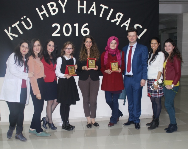 Fakültemizi 14-17 Nisan tarihlerinde Ankara’da gerçekleşecek 13. ‘Ulusal Hasta Bilgilendirme Yarışması’nda temsil edecek öğrencinin seçimi için 5 Mart 2016 tarihinde ‘KTÜ Eczacılık Fakültesi Hasta Bilgilendirme Yarışması Düzenleme Komitesi’ tarafından yarışma düzenlendi. 7 yarışmacı öğrencimizin performansı jüri üyeleri tarafından değerlendirildi ve yarışmanın sonuçları 8 Mart 2016 tarihinde gerçekleştirilen bir tören ile açıklandı. Yarışmayı Büşra Patan üçüncülük; Esra Yılmaz ikincilik derecesi alarak tamamladı. 4. Sınıf öğrencilerimizden Zeynep Gümüş yarışmanın birincisi oldu. Fakültemizin ilk Hasta Bilgilendirme Yarışması’nda bizleri yalnız bırakmayan 18. Bölge Trabzon Eczacı Odası Başkanı Ecz. Halit Uslu ve yönetim kurulu üyelerine, sayın Dekanımız Prof. Dr. Nurettin Yaylı’ya ve değerli hocalarımıza katılımlarından ve ilgilerinden dolayı teşekkür ederiz. Dereceye giren öğrencilerimizi tebrik eder, temsilci öğrencimize Ulusal Hasta Bilgilendirme Yarışması’nda başarılar dileriz. Yarışma jüri üyelerimiz olan Prof. Dr. Ufuk Özgen, Yrd. Doç. Dr. Gülin Renda, Yrd.Doç.Dr. Selin Doğan, Ecz. Hüsamettin Yeşilyurt, Ecz. Merve Kılıç ve Ecz. Ekrem Ertuğrul Uzun’a katkılarından dolayı teşekkür ederiz. 2017 yılı Hasta Bilgilendirme Yarışması’da tekrar bir arada olabilmek dileğiyle…