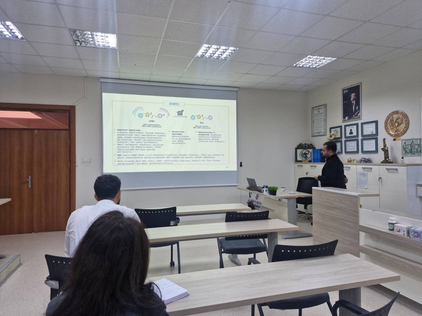 30 Aralık 2025 tarihinde Fakültemiz Farmasötik Kimya Ana Bilim Dalı'ndan Arş. Gör. Dr. Ahmet Buğra AKSEL'in sunumuyla makale saati etkinliği gerçekleştirildi. Sunumun ardından katılımcılarımız, makale hakkında bilimsel değerlendirmeler yaptılar.