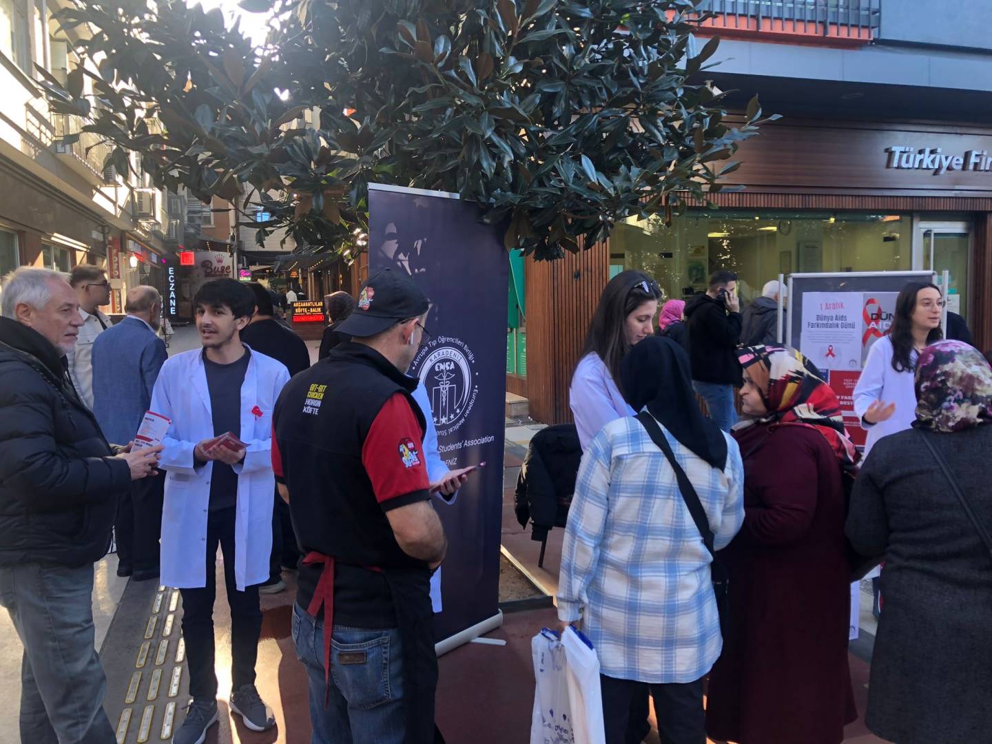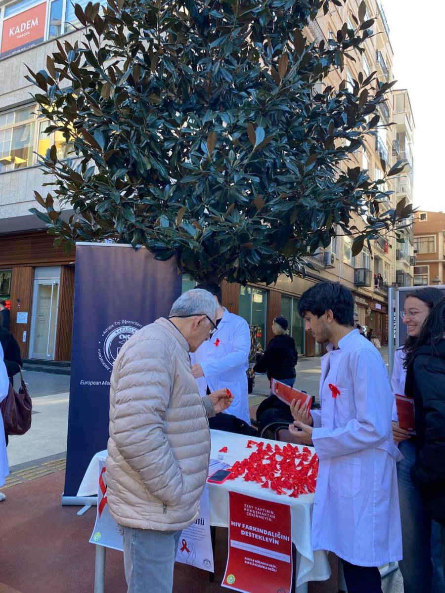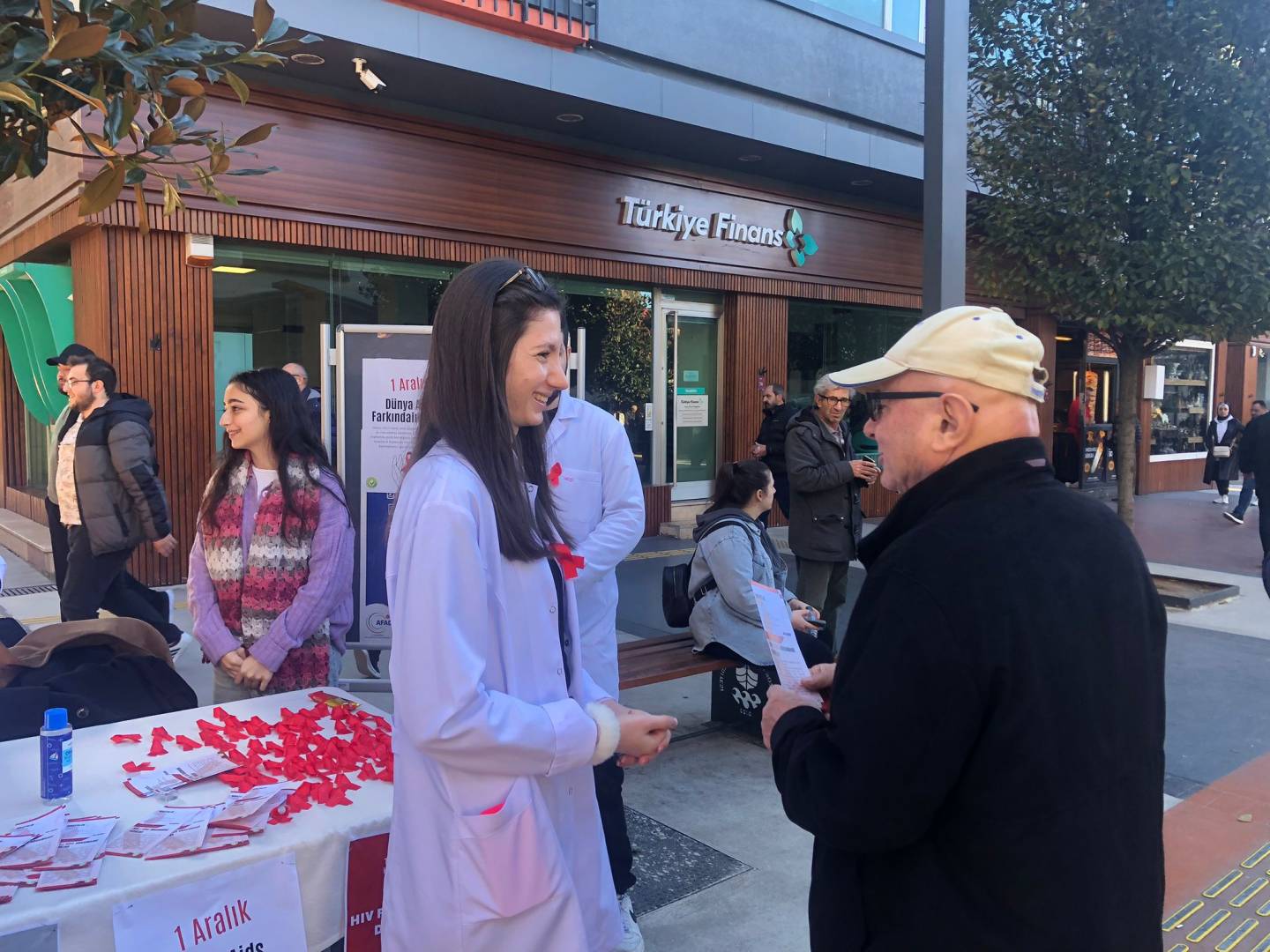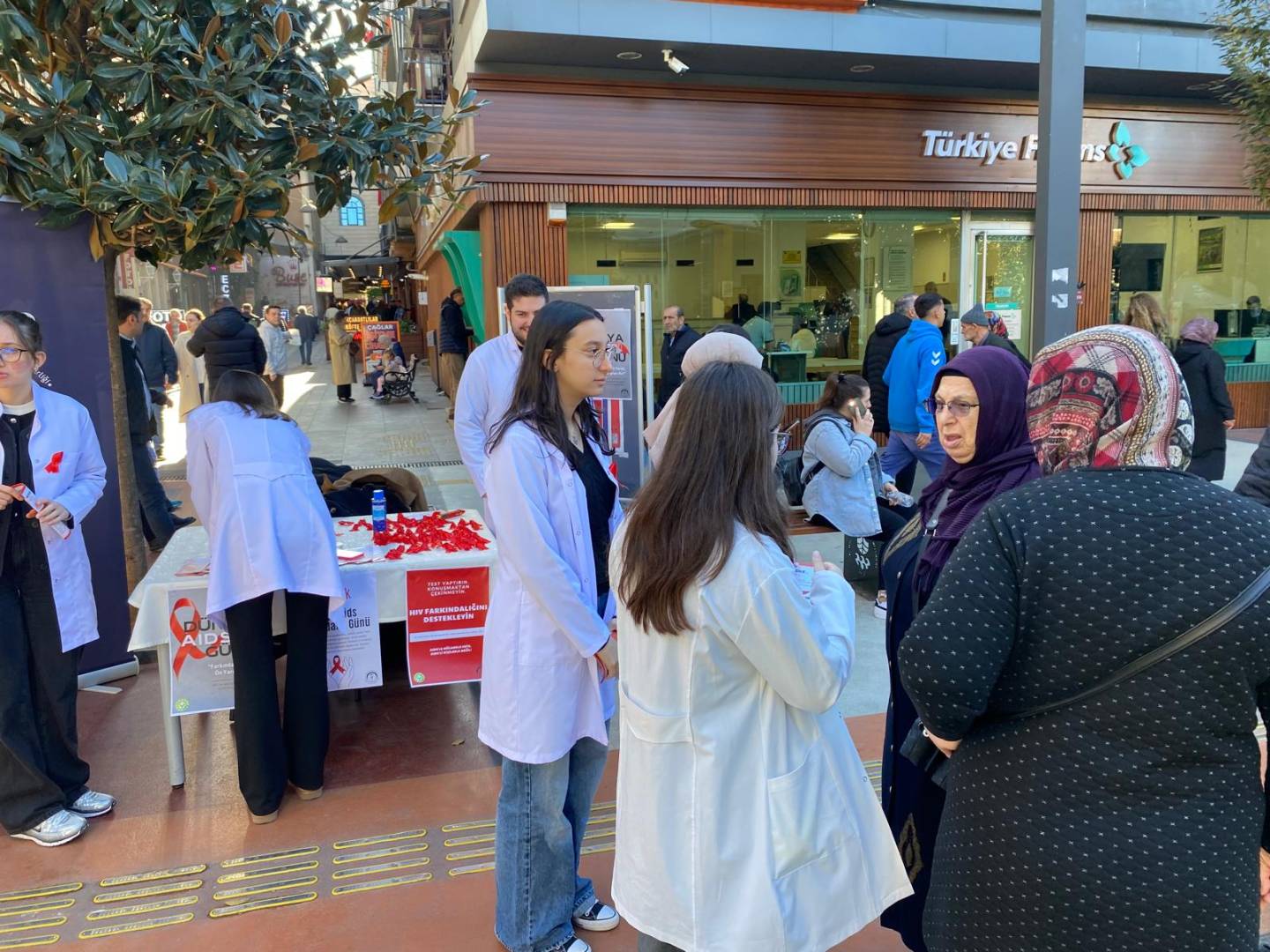 Saha boyunca bilgilendirici broşür ve afişler dağıtıldı, kurulan stantta vatandaşların soruları yanıtlandı. Ayrıca Dünya AIDS Günü’nün sembolü olan kırmızı kurdeleler, dayanışma ve farkındalık amacıyla halka takdim edildi.