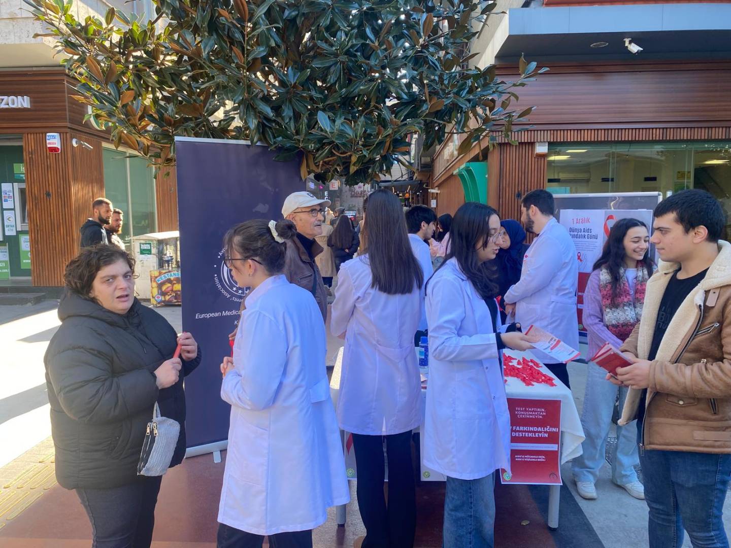 Karadeniz Teknik Üniversitesi (KTÜ) Tıp Fakültesi öğrencileri, AIDS’e karşı toplumda farkındalığı artırmak amacıyla sahada bilgilendirme etkinliği düzenledi. Geleceğin doktorları, HIV/AIDS konusunda doğru ve güncel bilgiye erişimi desteklemek için vatandaşlarla birebir iletişim kurdu.