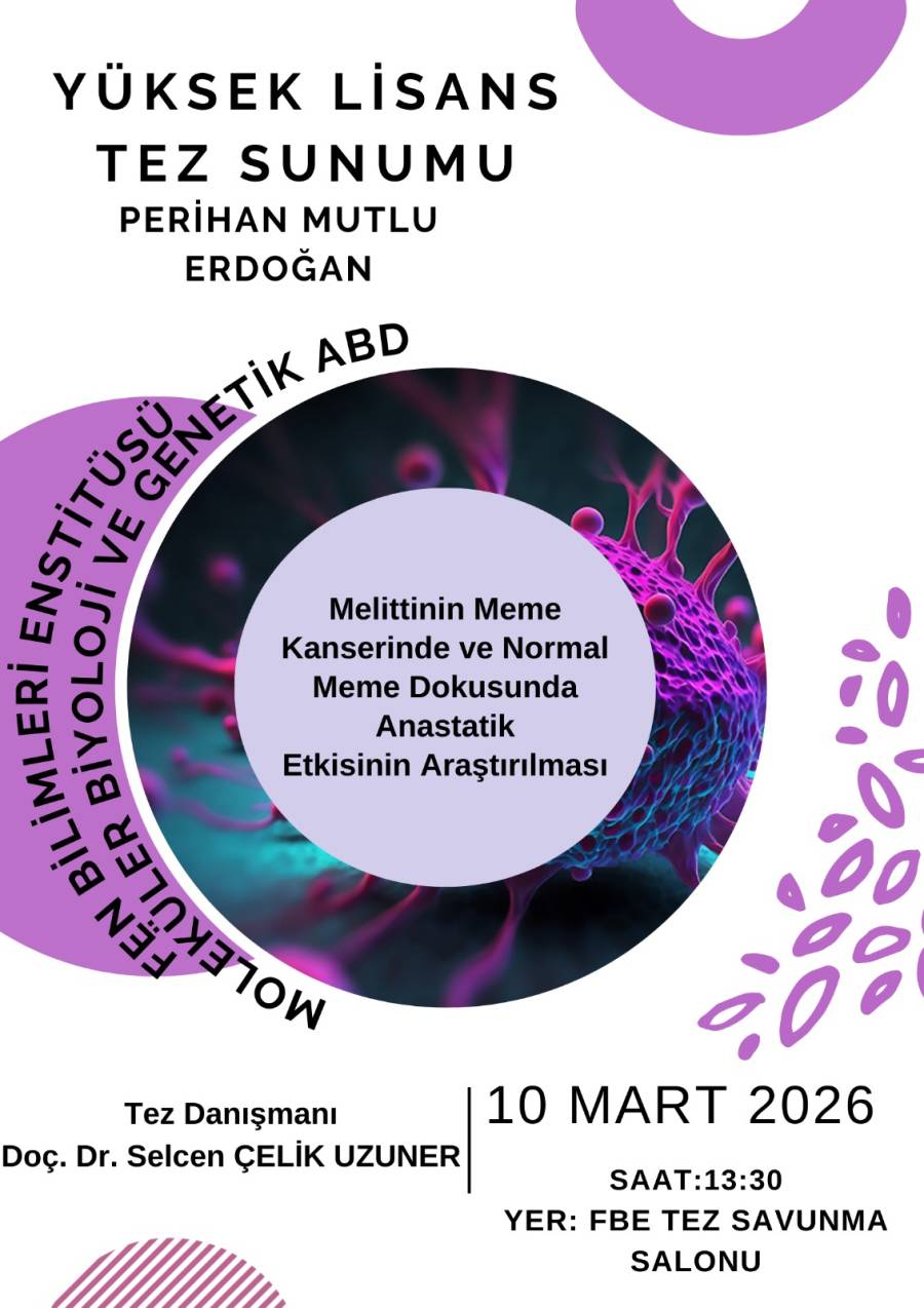 Konu "Melittinin Meme Kanserinde ve Normal Meme Dokusunda Anastatik Etkisinin Araştırılması"