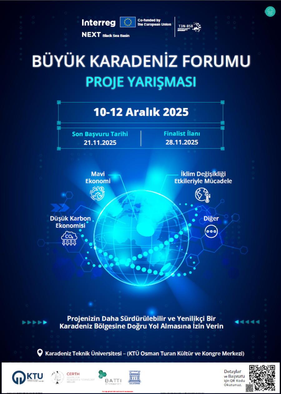 Üniversitemiz ev sahipliğinde, 10-12 Aralık 2025 tarihlerinde düzenlenecek olan Büyük Karadeniz Forumu (Grand Black Sea Forum), Karadeniz Havzası'ndaki akademi, sanayi, girişimcilik ve kamu kurumlarını bir araya getirerek bölgesel iş birliğini güçlendirmeyi ve sürdürülebilir kalkınma hedeflerine katkı sağlamayı amaçlamaktadır.