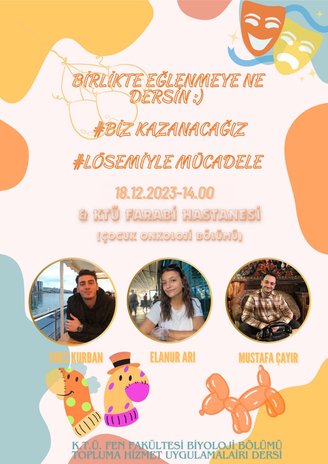 Topluma Hizmet Uygulamaları Etkinliği kapsamında son sınıf öğrencilerimizin düzenlediği 'Bizimle Eğlenmeye Ne Dersin' etkinliği ile Lösemili çocuklara moral etkinliği düzenlenecektir.