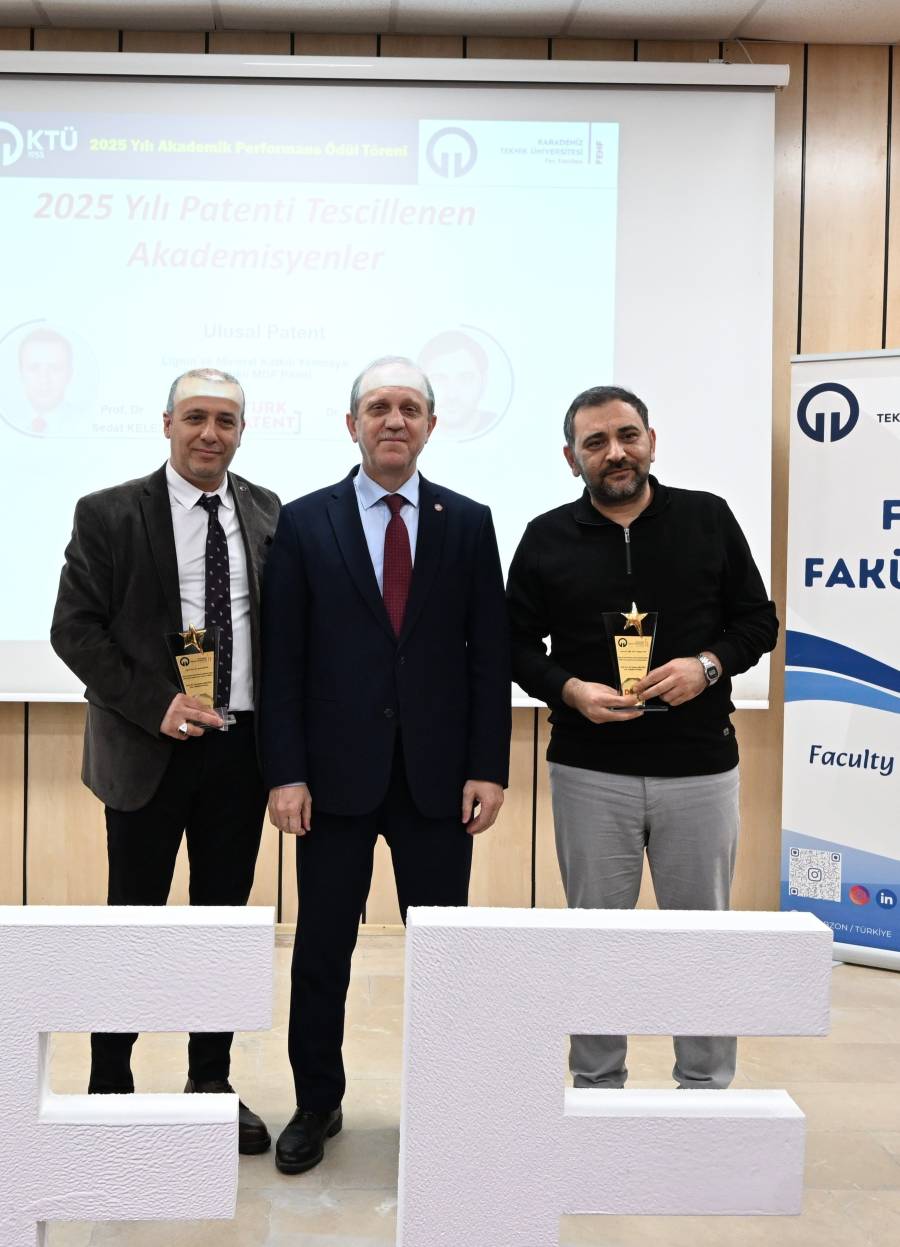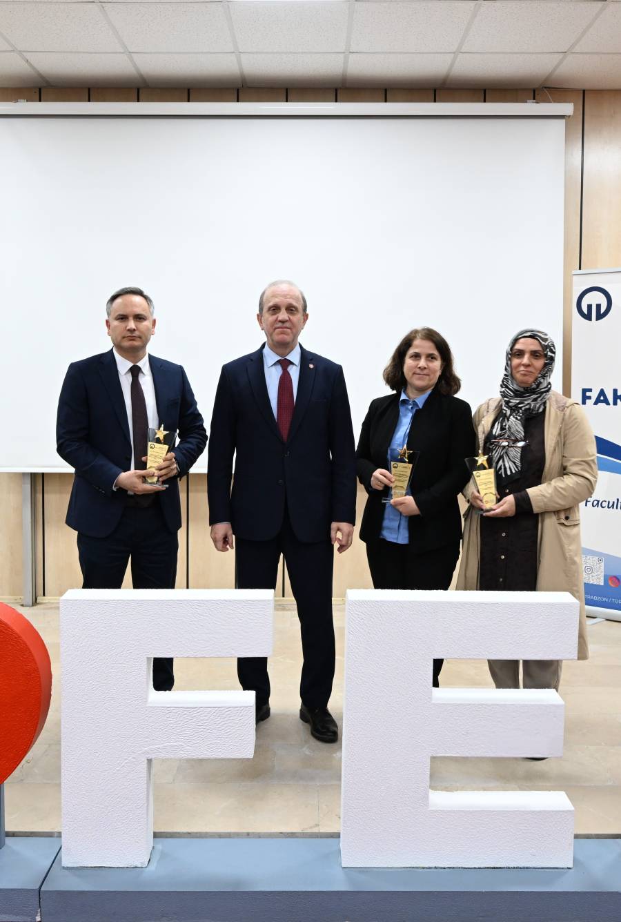Törene Rektörümüz Prof. Dr. Hamdullah ÇUVALCI, Rektör Yardımcıları Prof. Dr. Ali TEMİZ, Prof. Dr. Ömer Faruk URSAVAŞ, Fakültemiz Dekanı Prof. Dr. Ali Osman BELDÜZ, dekan yardımcıları ile akademik ve idari personel katıldı. Program, saygı duruşu ve İstiklal Marşı’nın ardından Dekanımız Prof. Dr. Ali Osman BELDÜZ’ün fakültemizin 2025 yılı akademik performansını açıklayan sunumuyla başladı. KTÜ Rektör Prof. Dr. Hamdullah ÇUVALCI, törende yaptığı konuşmada akademik başarılarından dolayı öğretim üyelerini tebrik ederek, KTÜ’nün bilimsel üretkenliğine katkı sunan tüm akademisyenlere teşekkür etti. Konuşmaların ardından ödül takdimlerine geçildi.