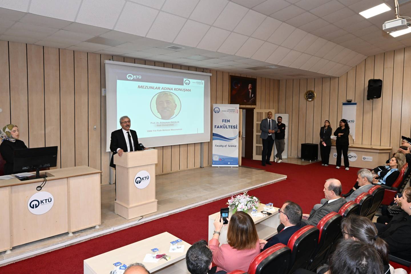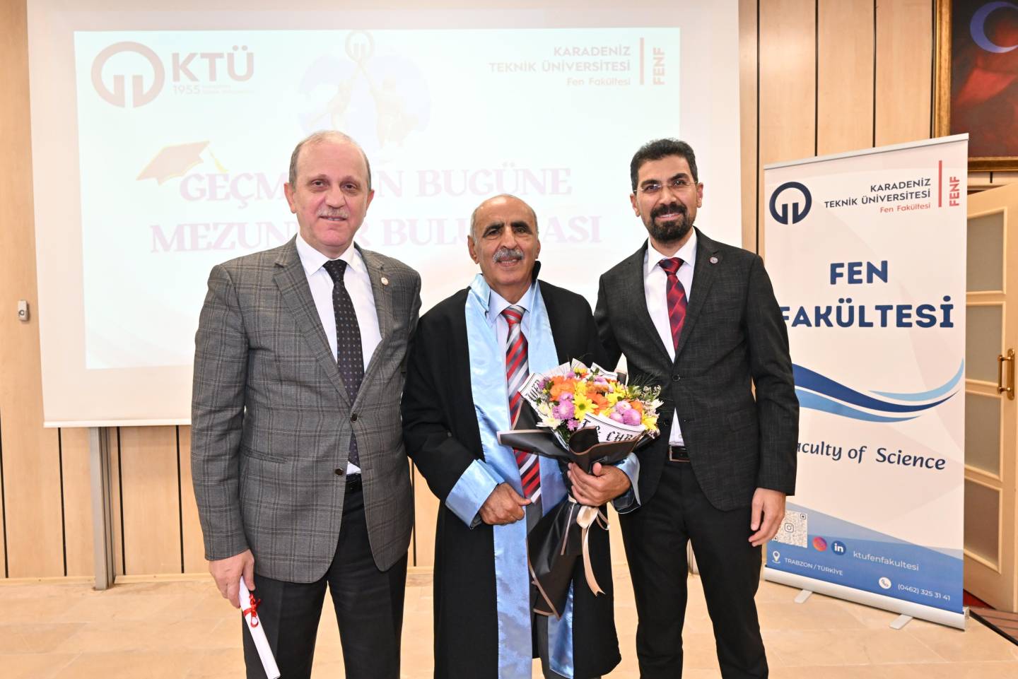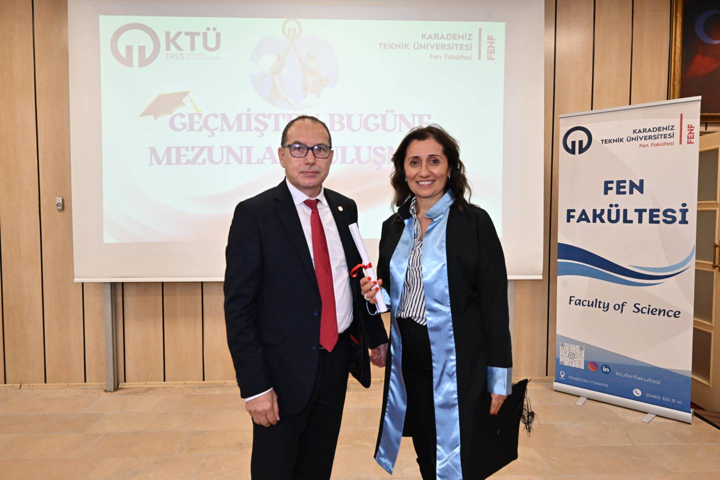 Programın ilerleyen saatlerinde, Nazım Terzioğlu Amfisi'nde düzenlenen törenle duygusal anlar yaşandı. Fakültemizin ilk mezunlarından, emekli kimya öğretmeni 1974 Kimya mezunumuz Deryami AKGÜL, temsili mezuniyet belgesini Sayın Rektörümüz Prof. Dr. Hamdullah ÇUVALCI'dan aldı. 1984 Fizik Bölümü mezunu ve Gazi Üniversitesi öğretim üyesi Prof. Dr. Süleyman ÖZÇELİK de mezunlar adına yaptığı konuşmada yıllar sonra yeniden aynı çatı altında buluşmanın mutluluğunu dile getirdi.