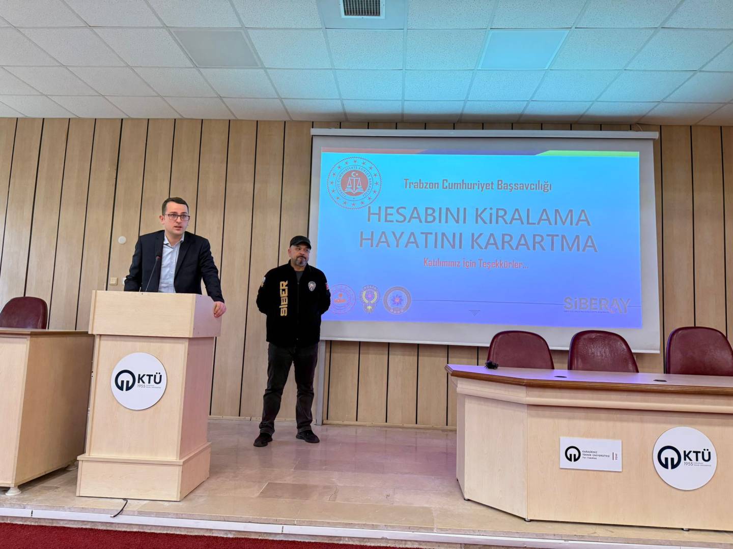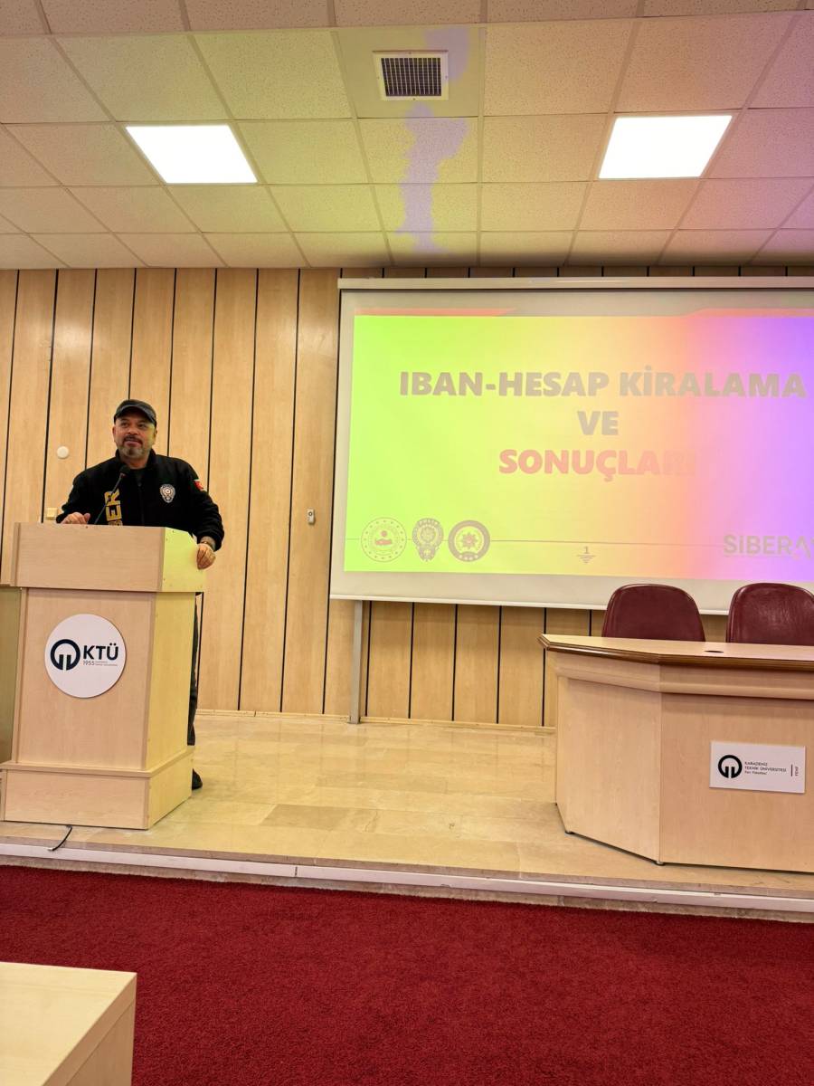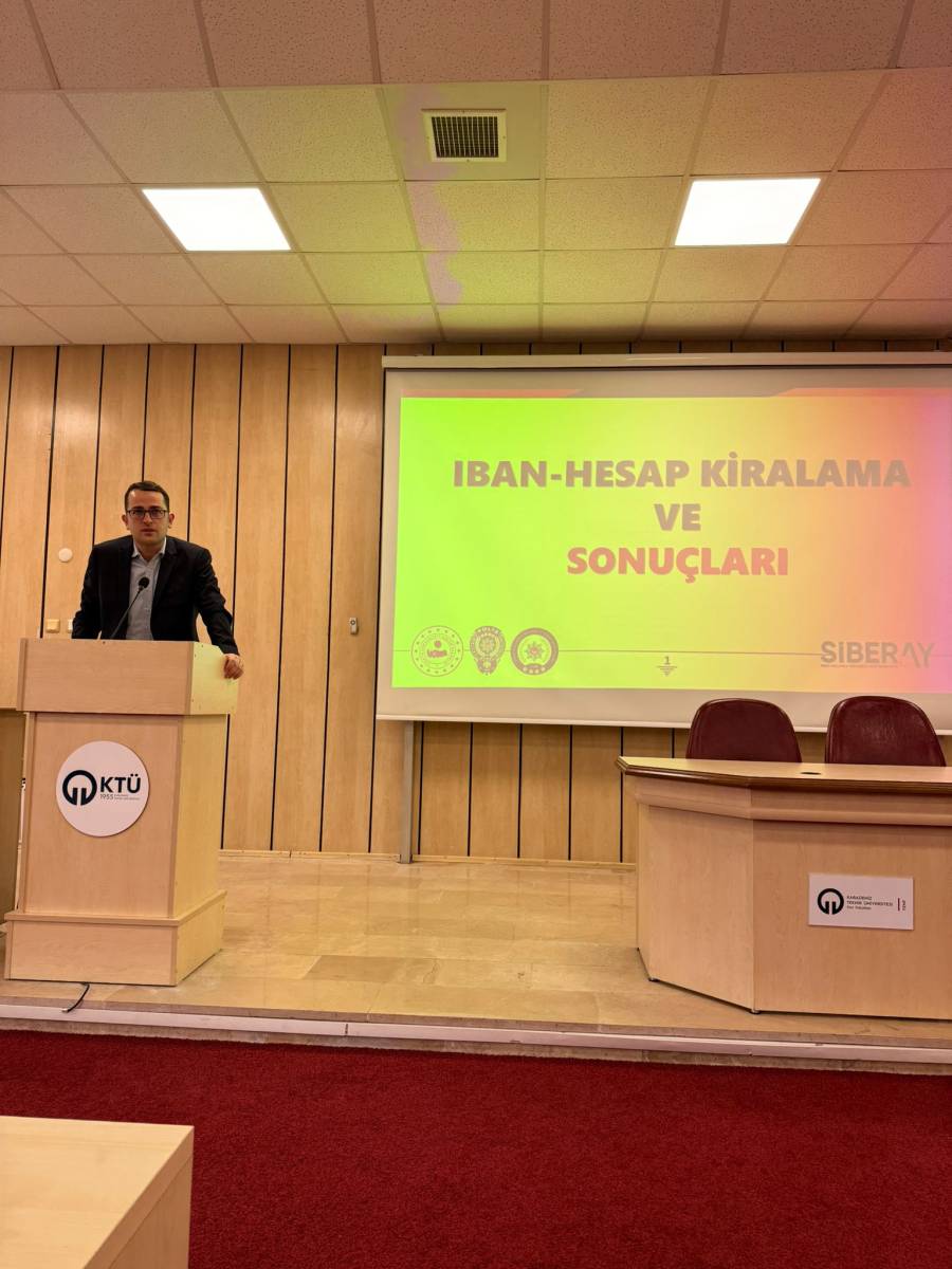 Trabzon Cumhuriyet Başsavcılığı ile Üniversitemiz arasında kurumsal iş birliğinin güçlendirilmesi amacıyla Savcı Abdulkerim BAŞBAY ve Siber Suçlarla Mücadele Şube Müdürlüğünden polis memuru İlhan TOZLUYURT tarafından düzenlenen eğitimde; sosyal medya hesabını kiralama sonucunda karşılaşılan dolandırıcılık ve siber suçlar sonucunda karşılaşılabilecek suçlar üzerinde duruldu.