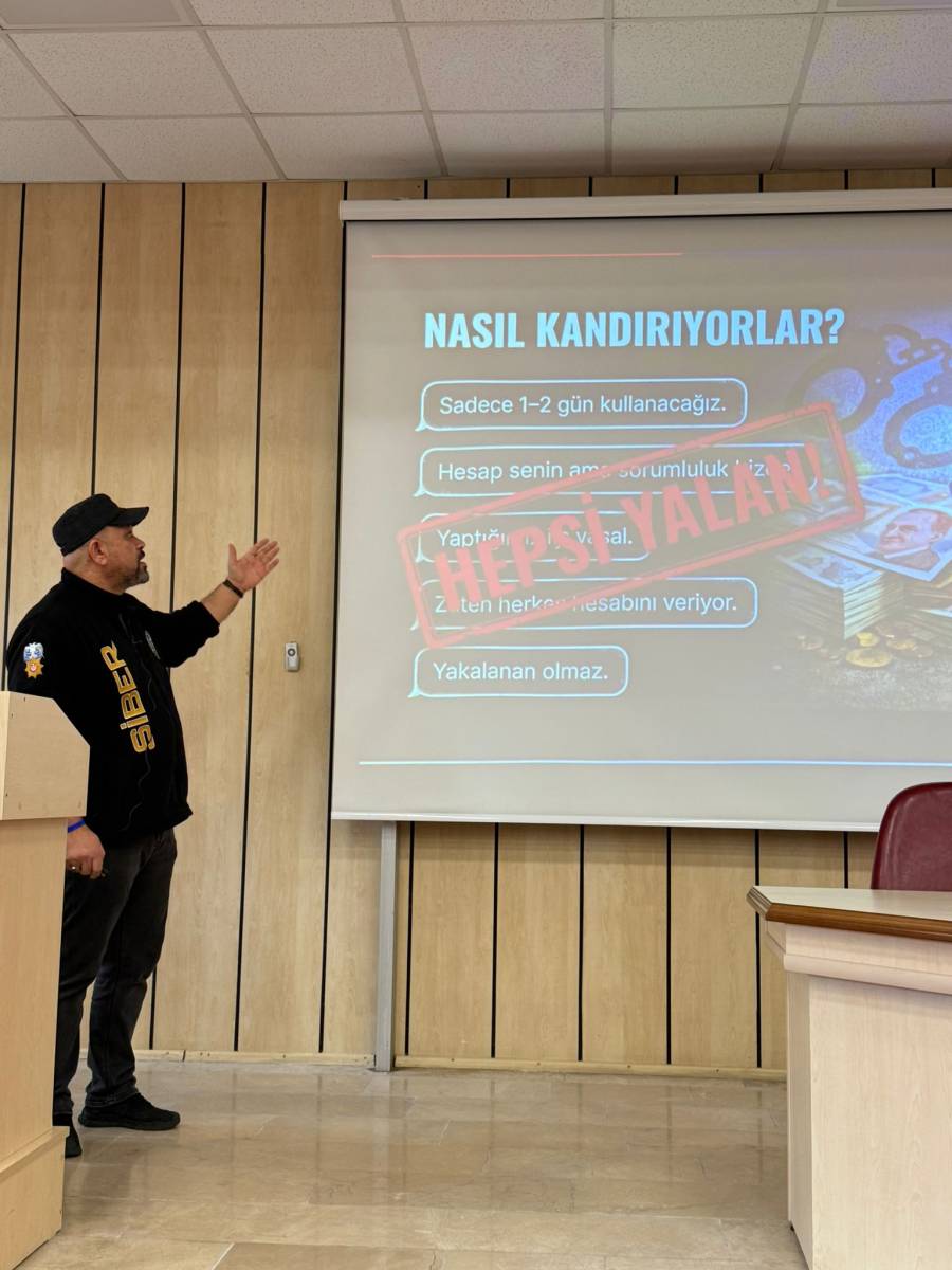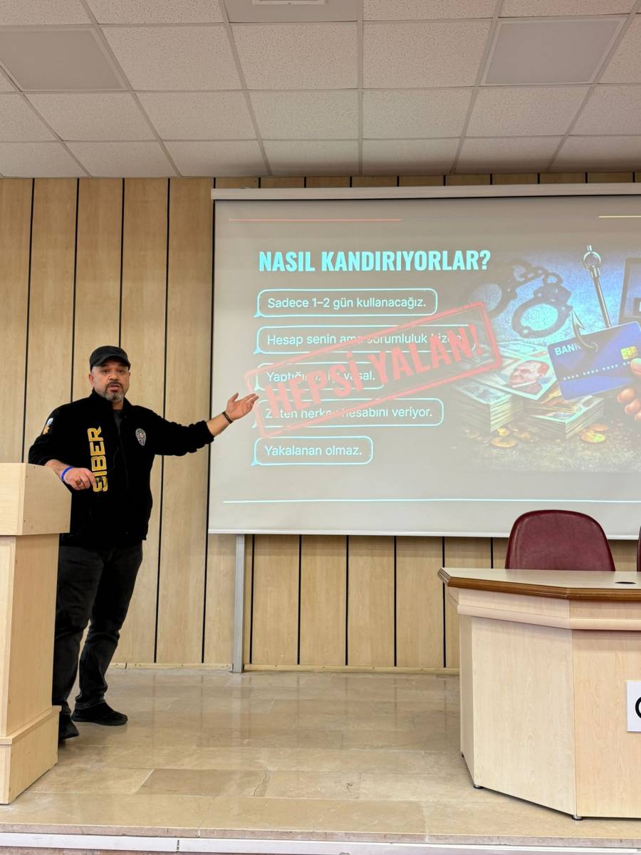 Fakültemizde 30 Mart 2026 Pazartesi günü saat 11:00’da Nazım Terzioğlu amfisinde "Hesabını Kiralama, Hayatını Karartma" konulu dolandırıcılık ve siber şuçlara karşı farkındalık eğitimi düzenlendi.