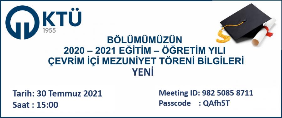 BÖLÜMÜMÜZ ÇEVRİM İÇİ MEZUNİYET TÖRENİ BİLGİLERİ (YENİ)