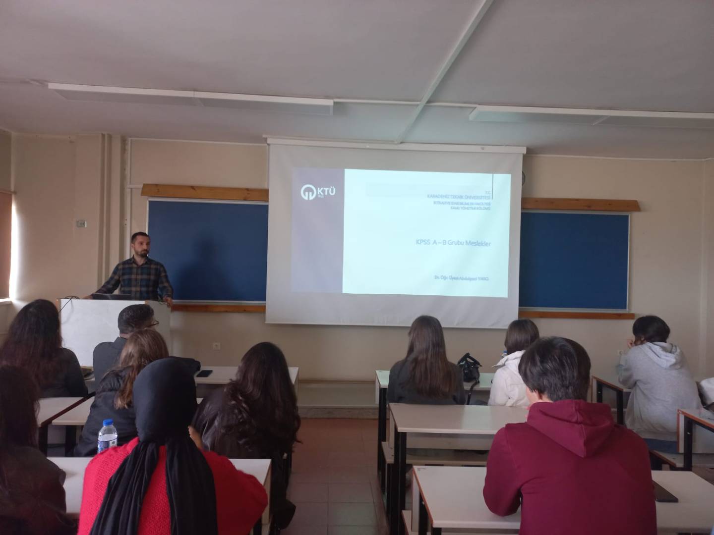 Ardından Dr. Öğr. Üyesi Abdulgazi Yıkıcı, KPSS süreci, A Grubu kariyer meslekleri ve kamu sektöründe kariyer olanakları üzerine bilgilendirici bir sunum gerçekleştirdi.