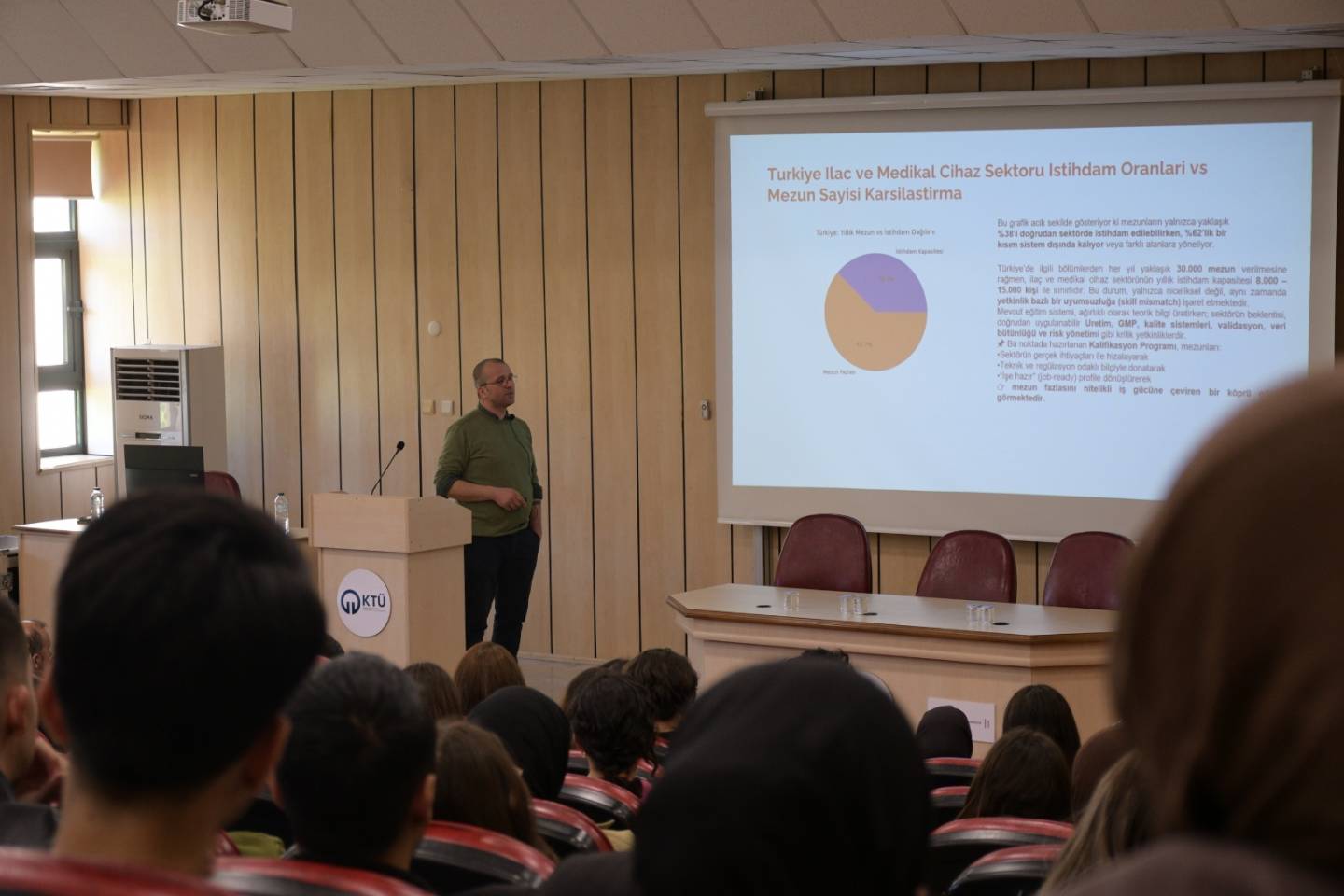 Program kapsamında farmasötik ve medikal cihaz sektörlerine dair güncel gelişmeler, kariyer olanakları ve sektöre giriş süreçleri ele alındı. Kimya, biyoloji, moleküler biyoloji ve genetik başta olmak üzere sağlık bilimleri alanlarında eğitim gören öğrenciler için önemli bilgiler paylaşılırken, katılımcılara sektörün dinamik yapısı hakkında kapsamlı bir perspektif sunuldu.