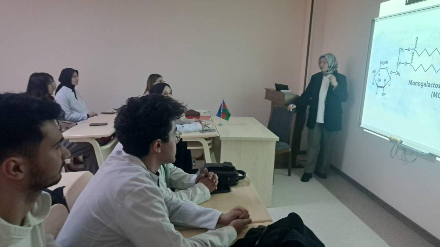 08 Nisan 2026 tarihinde Nahçıvan Devlet Üniversitesi ev sahipliğinde düzenlenen akademik etkinlikte, Bölümümüz Öğretim Üyesi Prof. Dr. Sevgi Kolaylı tarafından “Bilginin topluma yayılması amacıyla düzenlenen faaliyetler” kapsamında “Biyokimyada Güncel Yaklaşımlar” başlıklı bir seminer gerçekleştirildi. Üniversitenin ilgili fakülteleri ve araştırma birimlerinden akademisyenler, lisansüstü öğrenciler ve bilimsel çalışmalara ilgi duyan katılımcılar seminere yoğun ilgi gösterdi.