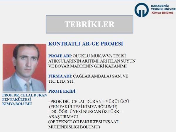 "Kontratlı Sanayi İş Birliği Projesi" Kapsamında Çağlar Ambalaj San. ve Tic. Ltd. Şti. Tarafından Fonlanan, Kimya Bölümü Öğretim Üyelerimizden Prof. Dr. Celal DURAN’ın Yürütücü Olduğu Kontratlı Ar-Ge Projesi Başlatılmıştır.