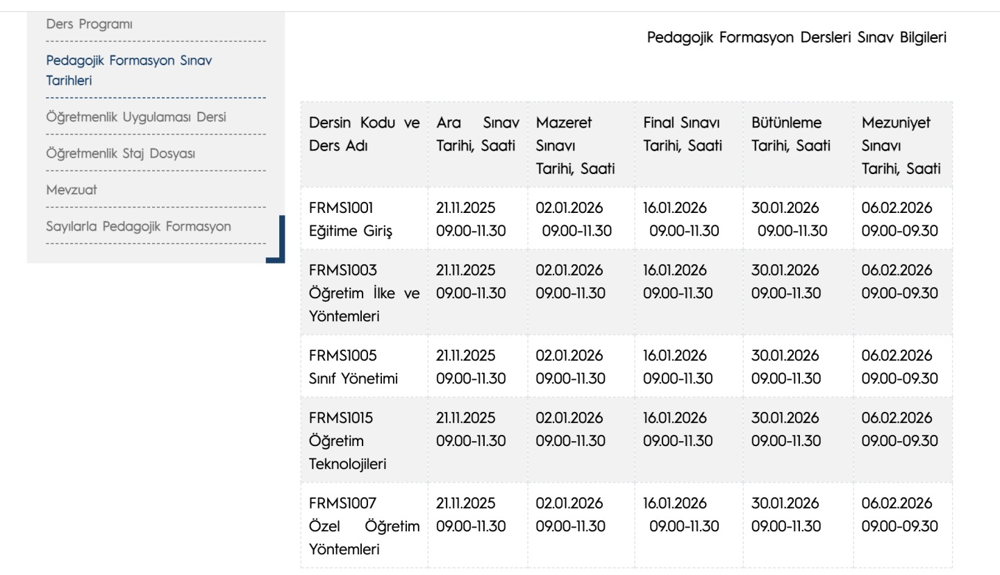 Formasyon Sınav Tarihleri