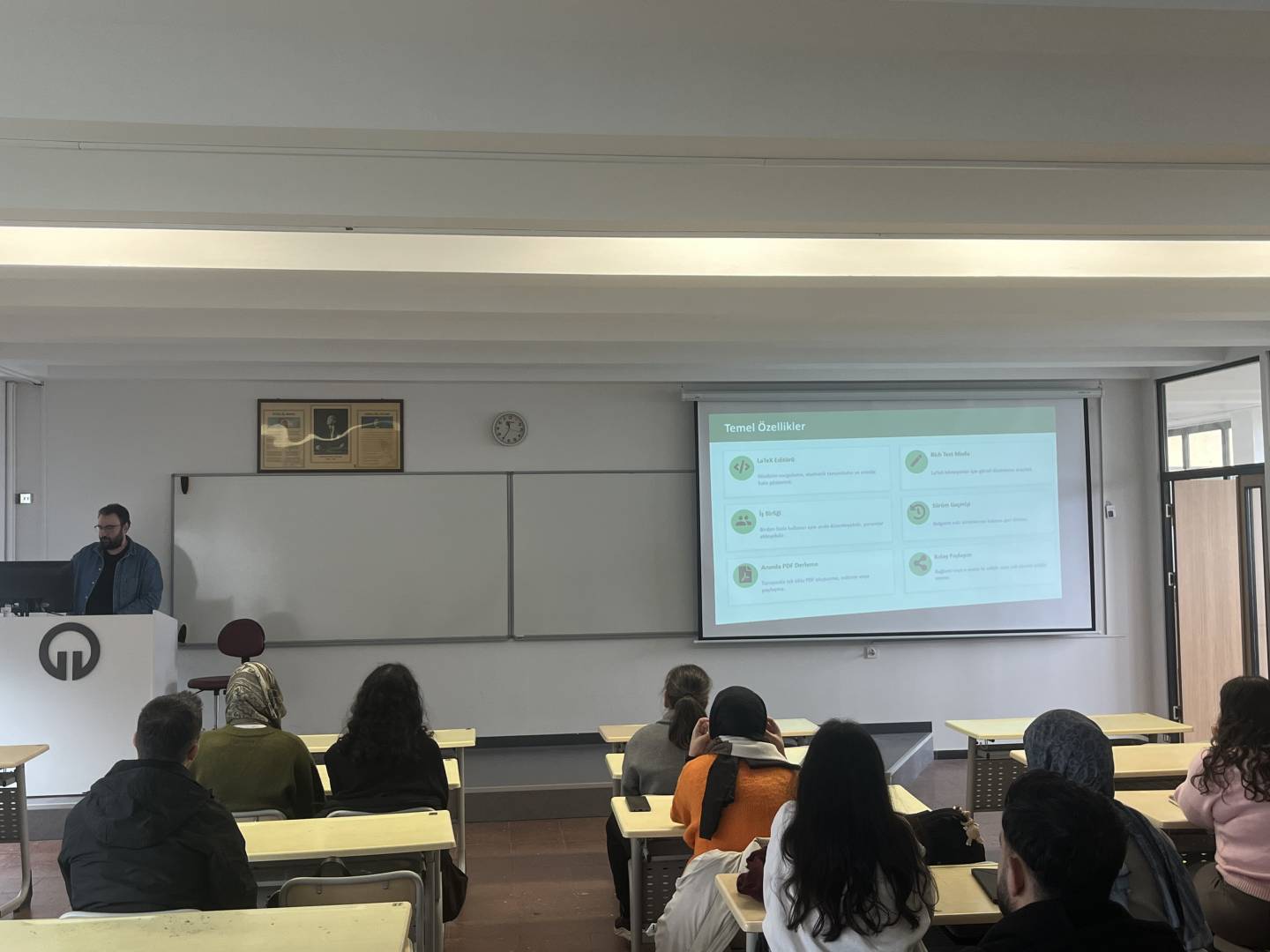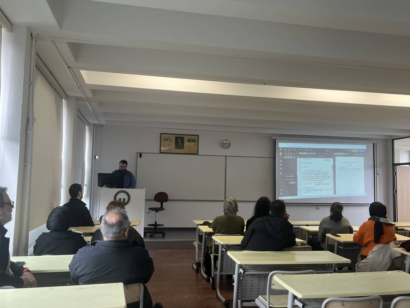 Akademik ve idari personelimizin mesleki ve kişisel gelişimlerine katkı sağlamak; öğrencilerimizin ise çevrimiçi ortamda doküman hazırlama becerilerini geliştirmek amacıyla, bölümümüz öğretim elemanlarından Arş. Gör. Dr. Rıdvan Yaprak tarafından 04.03.2026 tarihinde saat 11.30’da Cengiz Uluçay Dersliğimizde “Overleaf ile LaTeX Doküman Düzenleme” başlıklı eğitim semineri gerçekleştirilmiştir.