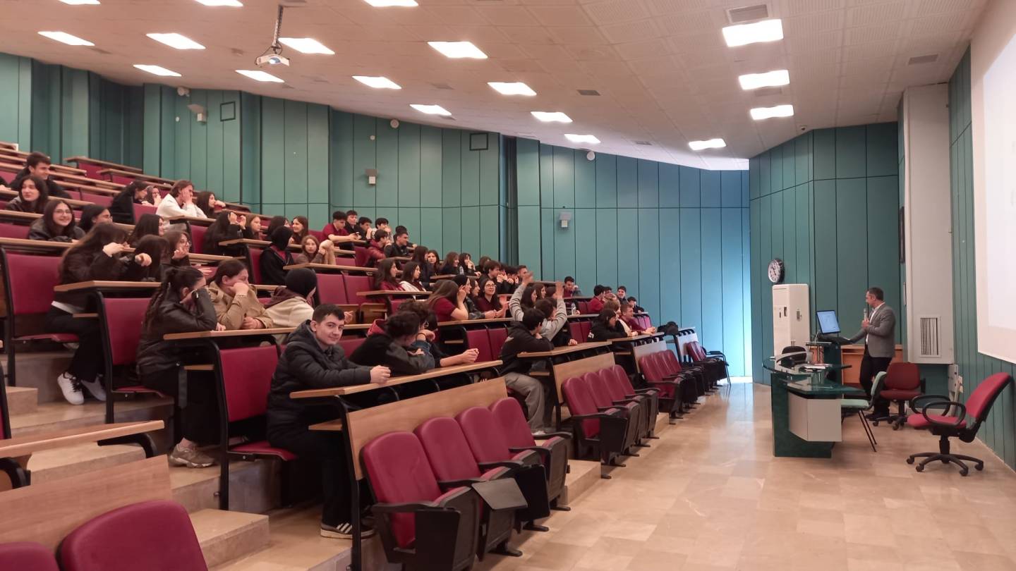 Ziyaret kapsamında, Dr. Öğr. Üyesi Ali Faruk ÖZYAŞAR tarafından Fakültemizin tanıtımı gerçekleştirildi. Öğrencilere eğitim-öğretim faaliyetlerimiz ve fakültemizin sunduğu olanaklar hakkında bilgi verildi. Ziyaret süresince öğrenciler, üniversite yaşamı ve akademik süreçler hakkında merak ettikleri soruları yöneltme fırsatı buldular. Etkinlik, samimi ve verimli bir atmosferde tamamlandı.
