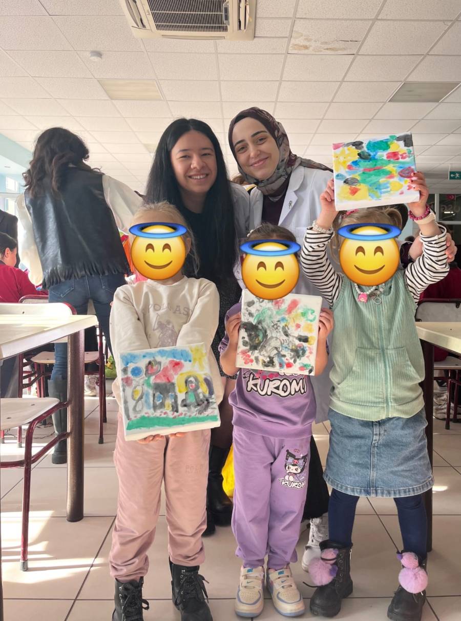 Kulüp üyeleri, minik öğrencilerin sıcacık gülümsemeleri ve içten heyecanı ile karşılanarak gün boyunca onların neşesine ortak oldu. Öğrencilerimiz, çocuklarla birlikte düzenledikleri tuval boyama etkinliği ile miniklerin rengârenk hayal dünyalarına eşlik etti. Etkinlik boyunca ortaya çıkan yaratıcı çalışmalar, hem kulüp üyeleri hem de öğrenciler için unutulmaz anlar oluşturdu.