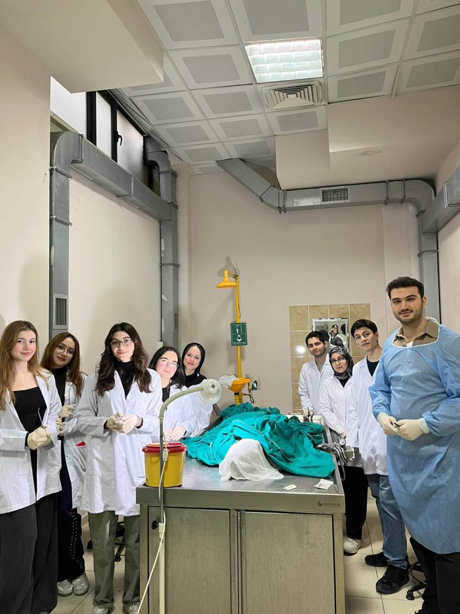 Fakültemiz öğrenci kulüplerinden KASIS kulübü, 23 Aralık 2025 tarihinde Farabi Hastanesi iş birliğiyle 8.30-17.00 saatleri arasında Anatomi Laboratuvarı’nda “Kadavra Üzerinde Sütur Atma” adlı eğitim düzenledi.