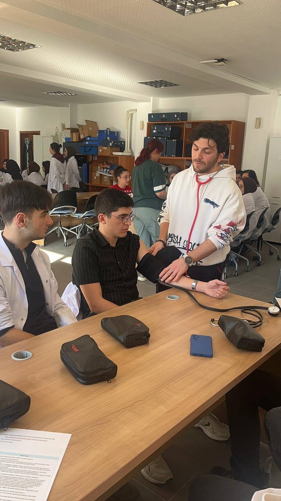 Etkinlik kapsamında, öğrencilere yönelik temel klinik beceriler üzerine bilgilendirme ve uygulama çalışmaları gerçekleştirildi. Dört istasyondan oluşan eğitimde, katılımcılara bandaj uygulama, damar yolu açma, intramüsküler enjeksiyon ve tansiyon ölçme hakkında teorik bilgiler aktarıldı ve ardından her öğrenci bu becerileri uygulamalı olarak deneyimleme fırsatı buldu.