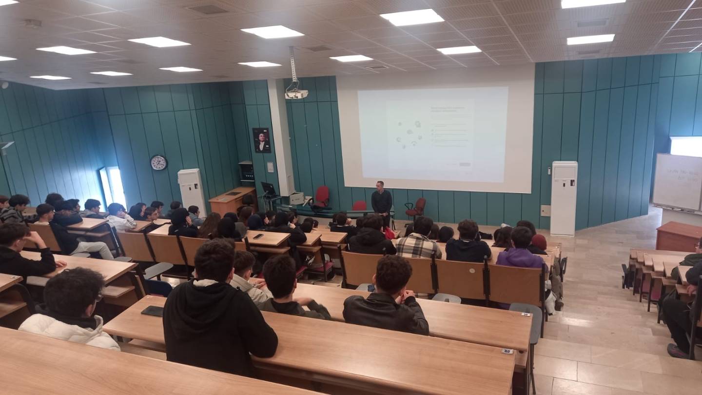Ziyaret kapsamında, Dr. Öğr. Üyesi Ali Faruk ÖZYAŞAR tarafından Fakültemizin tanıtımı gerçekleştirildi. Öğrencilere eğitim-öğretim faaliyetlerimiz ve fakültemizin sunduğu olanaklar hakkında bilgi verildi. Ziyaret süresince öğrenciler, üniversite yaşamı ve akademik süreçler hakkında merak ettikleri soruları yöneltme fırsatı buldular. Etkinlik, samimi ve verimli bir atmosferde tamamlandı.