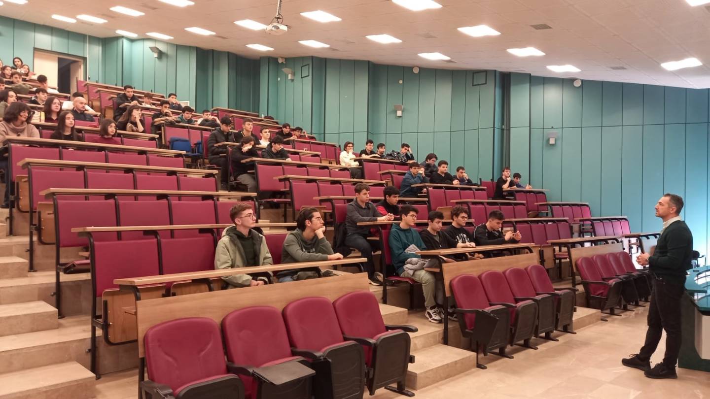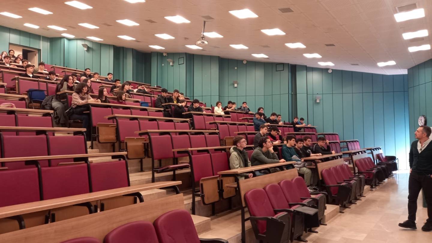 Ziyaret kapsamında, Dr. Öğr. Üyesi Ali Faruk ÖZYAŞAR tarafından Fakültemizin tanıtımı gerçekleştirildi. Öğrencilere eğitim-öğretim faaliyetlerimiz ve fakültemizin sunduğu olanaklar hakkında bilgi verildi. Ziyaret süresince öğrenciler, üniversite yaşamı ve akademik süreçler hakkında merak ettikleri soruları yöneltme fırsatı buldular. Etkinlik, samimi ve verimli bir atmosferde tamamlandı.