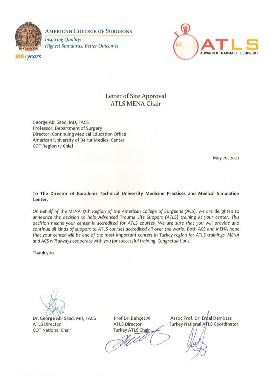 Üniversitemiz İyi Hekimlik Uygulamaları ve Simülasyon Merkezi, Uluslararası ATLS Kursları İçin Akreditasyon Belgesi Aldı
