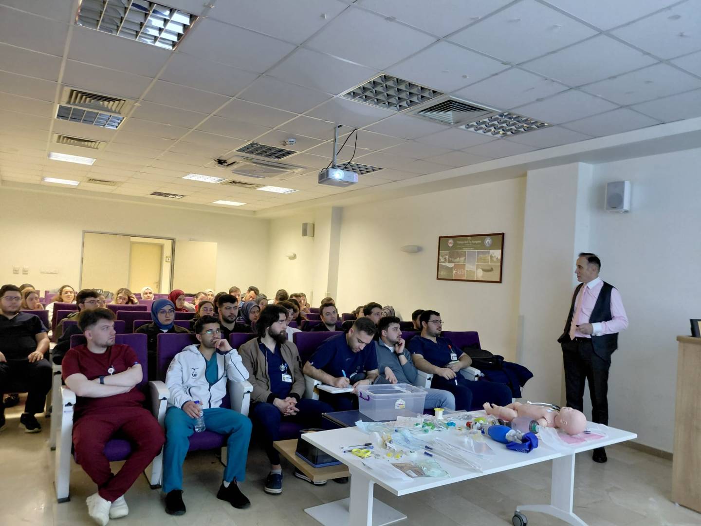 23-24 Mart 2026 tarihlerinde, Karadeniz Teknik Üniversitesi Tıp Fakültesi 6. sınıf öğrencileri için Yenidoğan Canlandırma Programı (NRP) Eğitimi düzenlenmiştir. Eğitim programı, teorik bilgilerin yanı sıra uygulamalı oturumları da kapsayacak şekilde iki gün boyunca yürütülmüştür. Toplam 37 öğrencinin katılım sağladığı program, Prof. Dr. Yakup Aslan ile Dr. Öğr. Üyesi Filiz Aktürk Acar’ın değerli katkıları ve yeni doğan hemşirelerinin uygulamalardaki destekleriyle gerçekleştirilmiştir. Bu önemli eğitim programının başarıyla gerçekleştirilmesine destek veren başta eğitmenlerimize, katkı sağlayan hemşirelerimize ve her türlü imkânı sunan KTÜ Tıp Fakültesi Dekanlığı’na teşekkür ederiz.