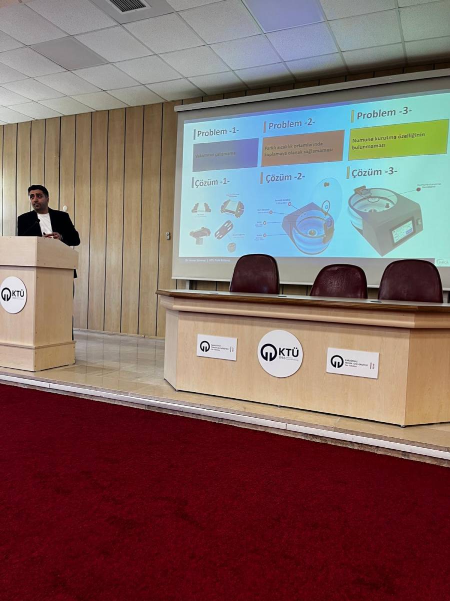 Etkinliğe konuşmacı olarak katılan Dr. İmran Kanmaz (TÜBİTAK BİGG Girişimcisi – İMKA Teknoloji Şirketi), akademik bilgi birikiminin girişimcilik ekosistemine nasıl aktarılabileceğine dair önemli paylaşımlarda bulundu. Sunumunda, bilimsel araştırma süreçlerinden teknoloji tabanlı girişimlerin oluşumuna uzanan yolculuğunu aktaran Kanmaz, özellikle genç araştırmacılar için girişimcilik fırsatları, proje geliştirme süreçleri ve TÜBİTAK destek programları hakkında bilgi verdi.