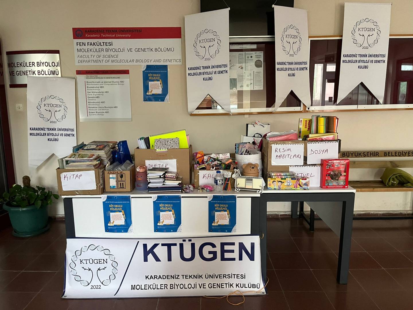 Moleküler Biyoloji ve Genetik Bölümü olarak, toplumsal farkındalık oluşturmak ve eğitime destek sağlamak amacıyla ilk sosyal sorumluluk projemizi başarıyla tamamladık. ‘Küçük Adımlar, Büyük Kazanımlar’ temalı bu proje kapsamında, köy okullarında öğrenim gören öğrencilerimize ulaştırılmak üzere kırtasiye malzemeleri toplandı.