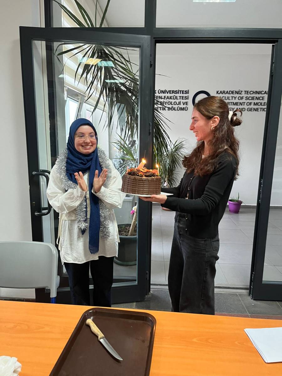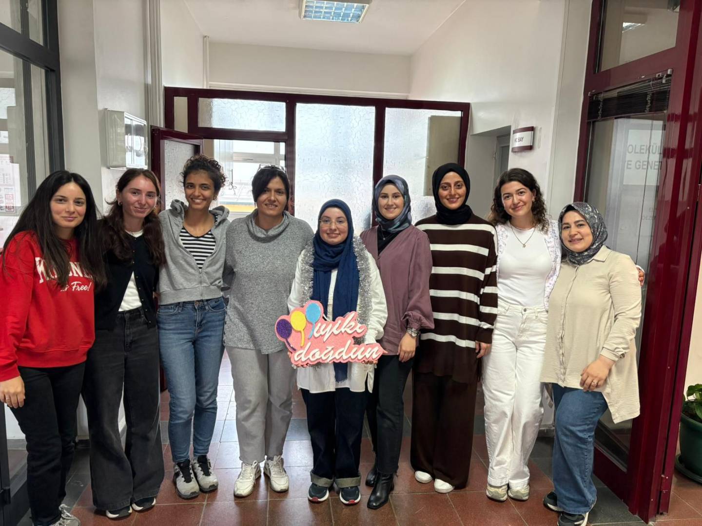 Bölümümüz yüksek lisans öğrencilerinden ve Epigenetik ve Kanser Araştırma grubu üyesi Sevde Nur Üçüncü için doğum günü kutlaması düzenlendi. Bölüm akademik personeli ile öğrencilerin katılımıyla gerçekleştirilen kutlamada, keyifli anlar yaşandı.